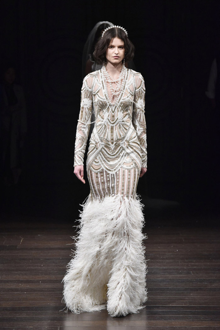 The designer gave his bride a chance to show her adventurous side, with unique silhouettes, some harkening back to the flapper era.