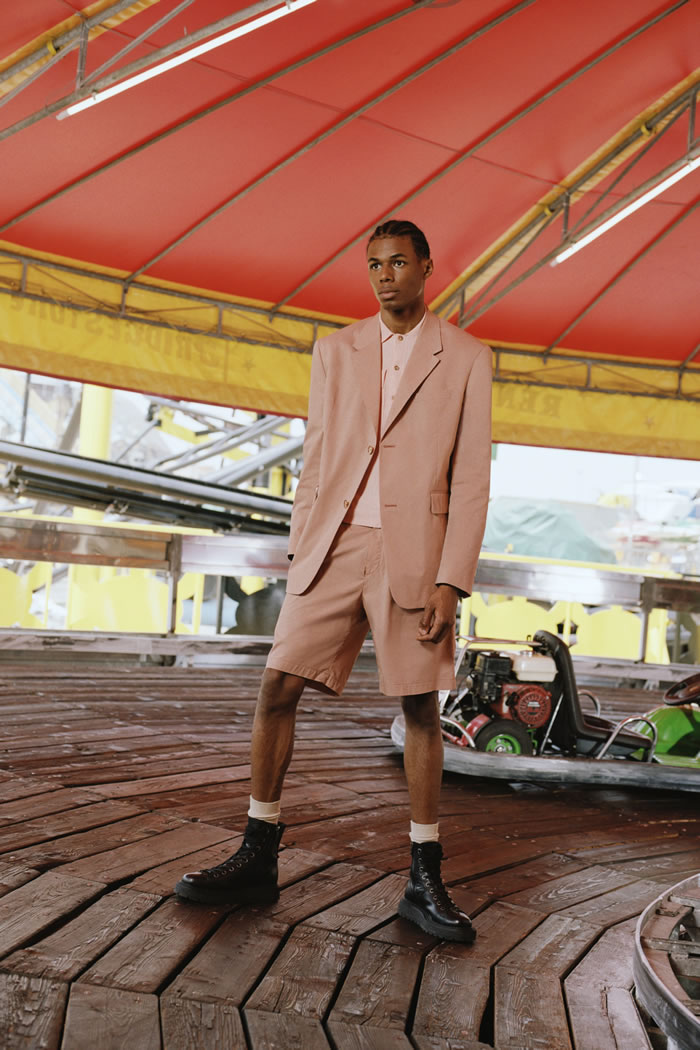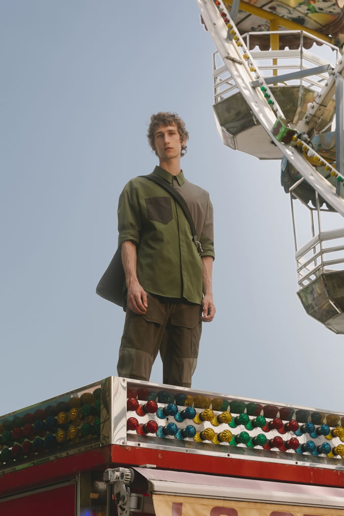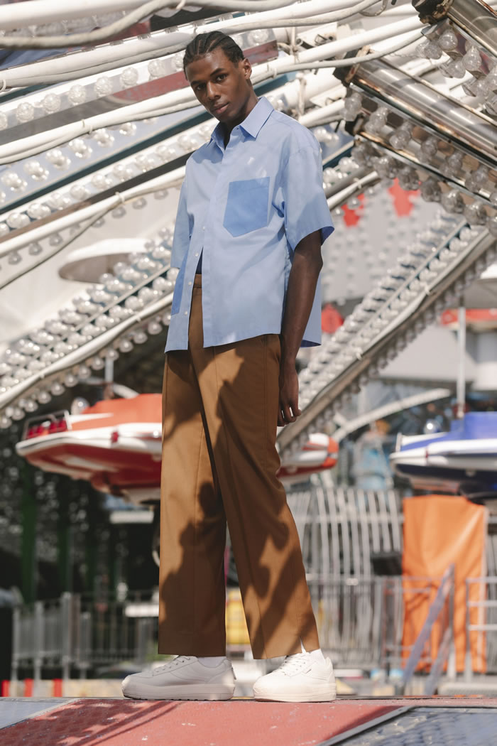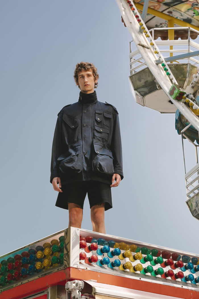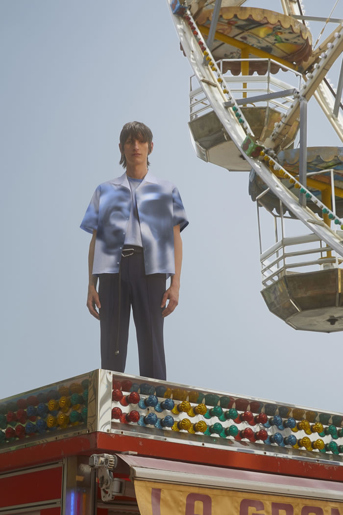 To celebrate the new sense of optimism developing amidst the loosening of lockdowns, Neil Barrett’s crew decamped to Milan’s Idroscalo amusement park to shoot his lookbook. “We had such fun,” he said at a showroom appointment.