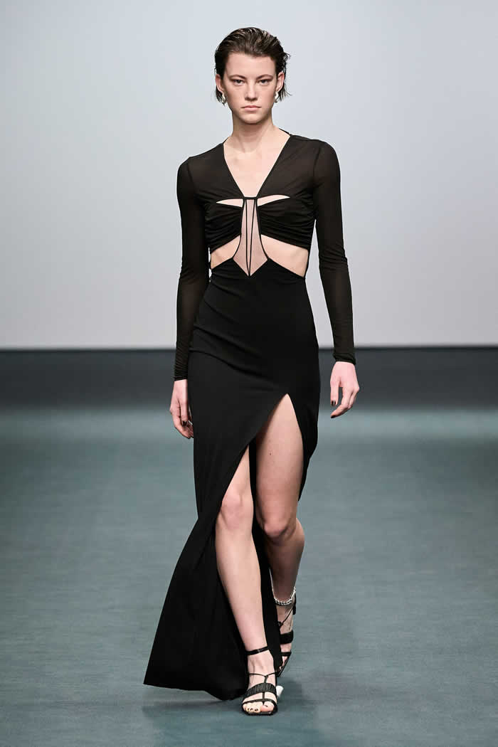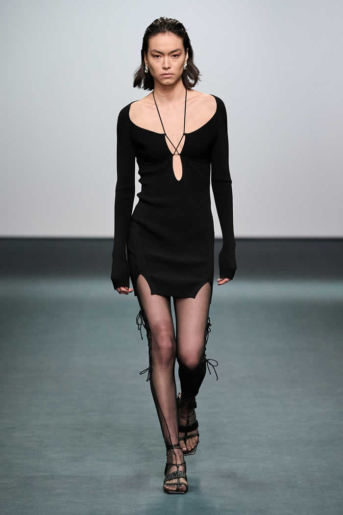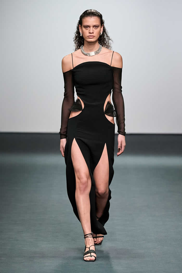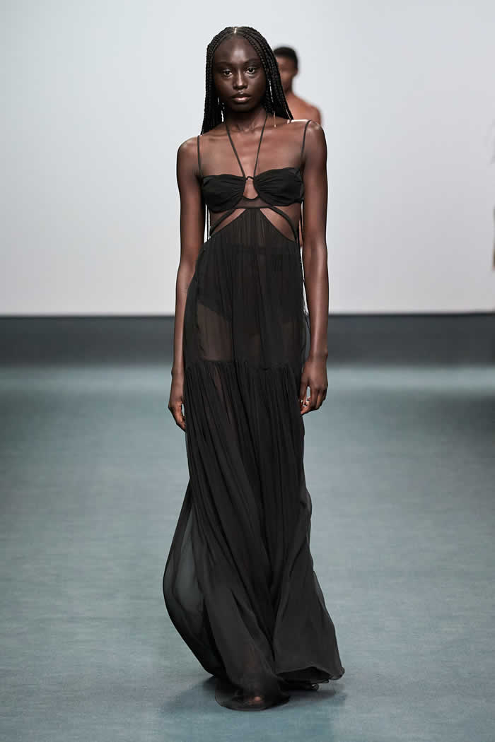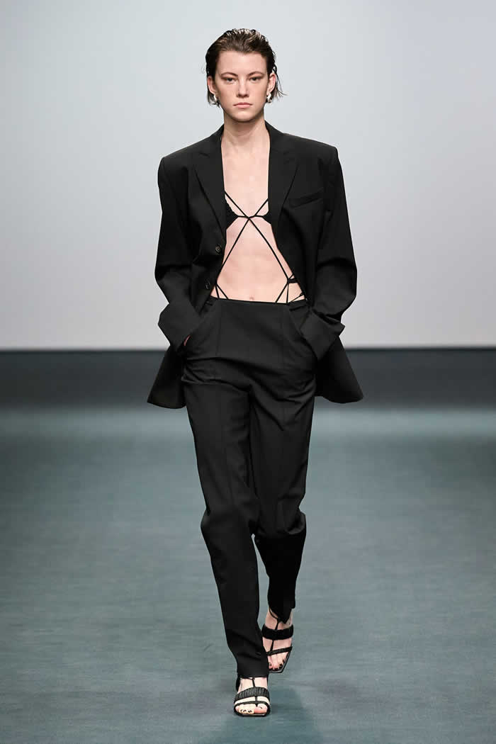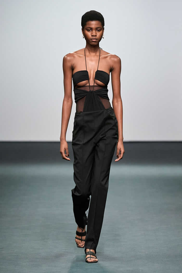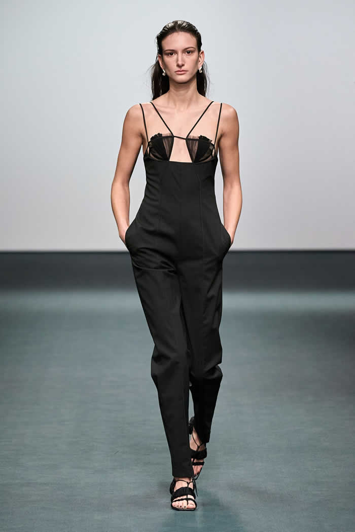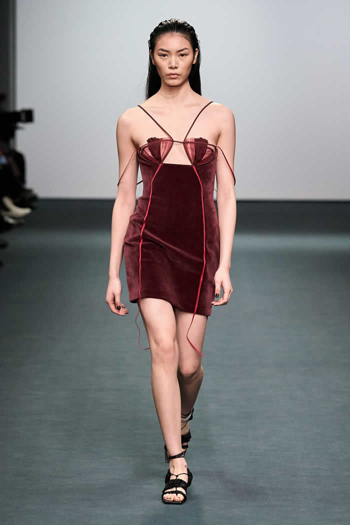 Dojaka proved how her lingerie-based aesthetic, with its delicately complex array of straps, bras, and cutouts, can now flex to encompass excellent tailoring, puffer jackets, and knitwear as well drop-dead, sinuously desirable long evening dresses.