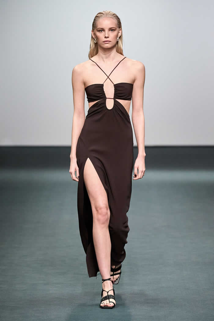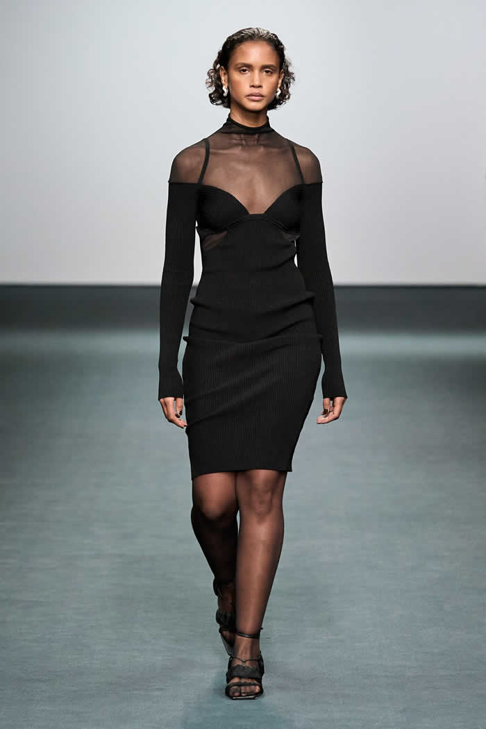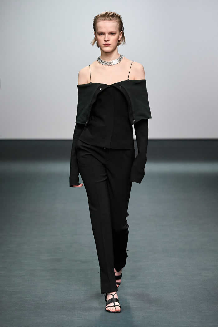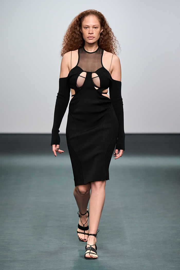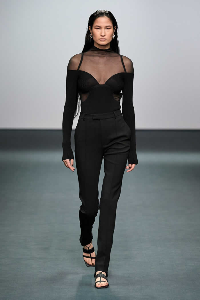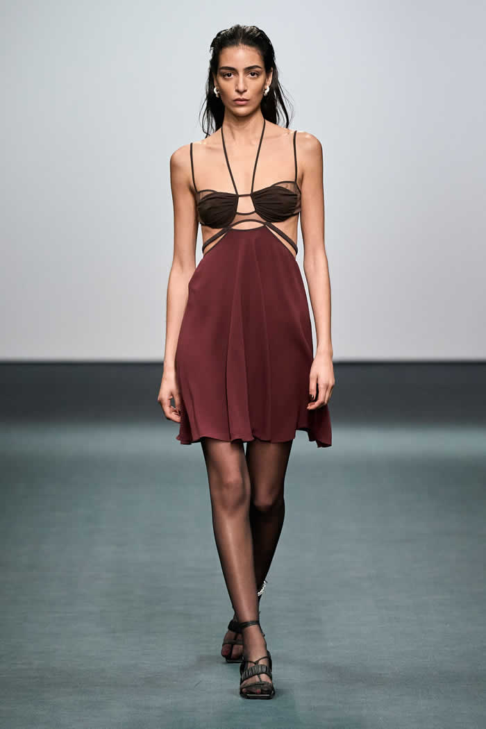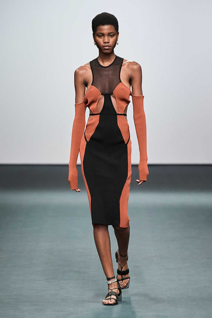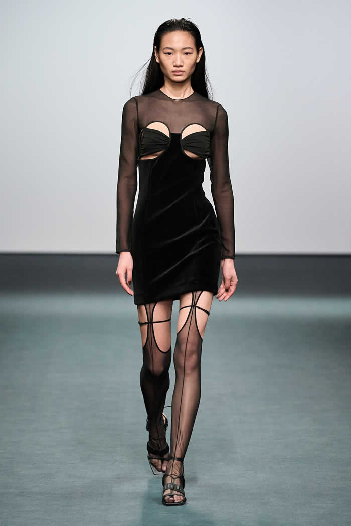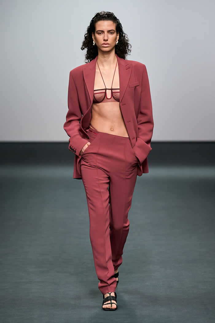 Dojaka proved how her lingerie-based aesthetic, with its delicately complex array of straps, bras, and cutouts, can now flex to encompass excellent tailoring, puffer jackets, and knitwear as well drop-dead, sinuously desirable long evening dresses.