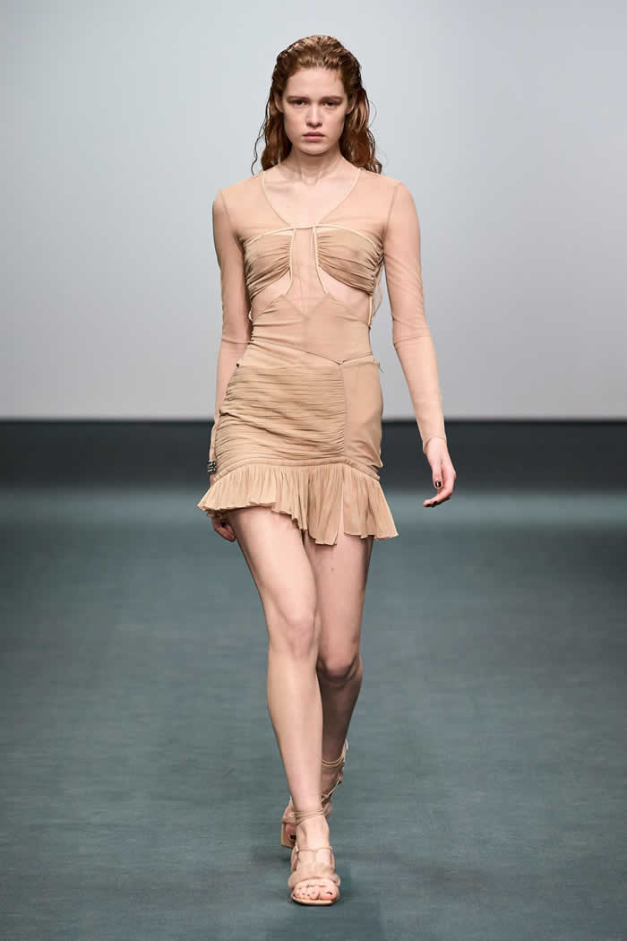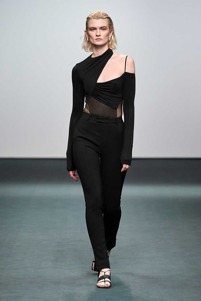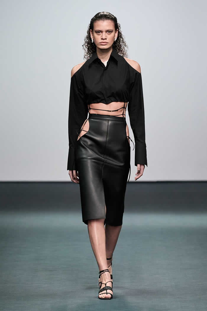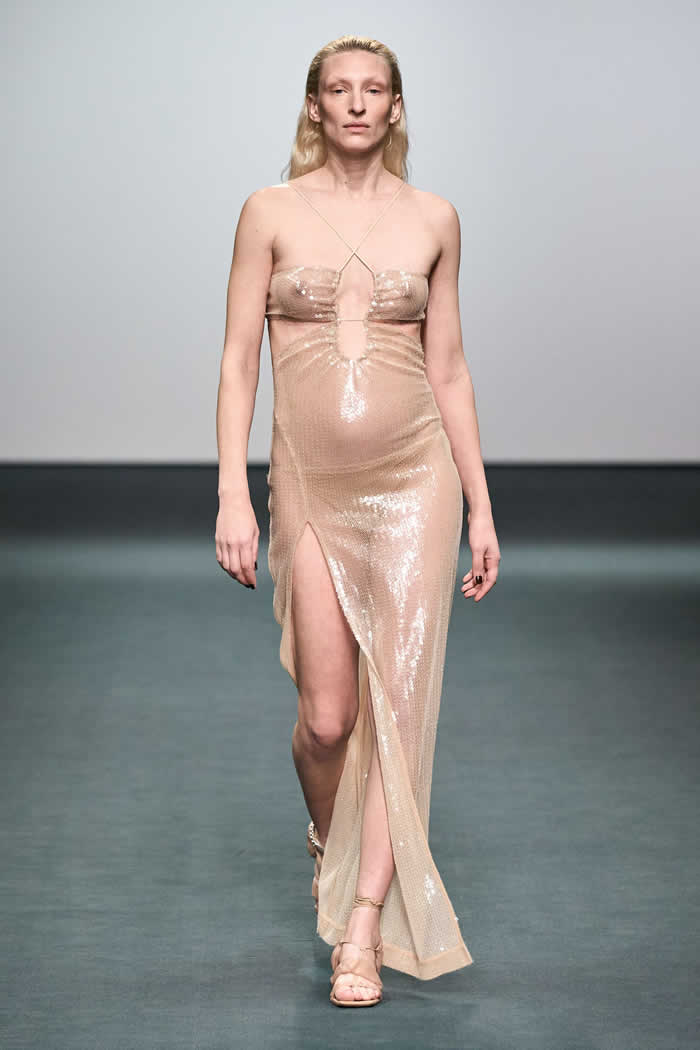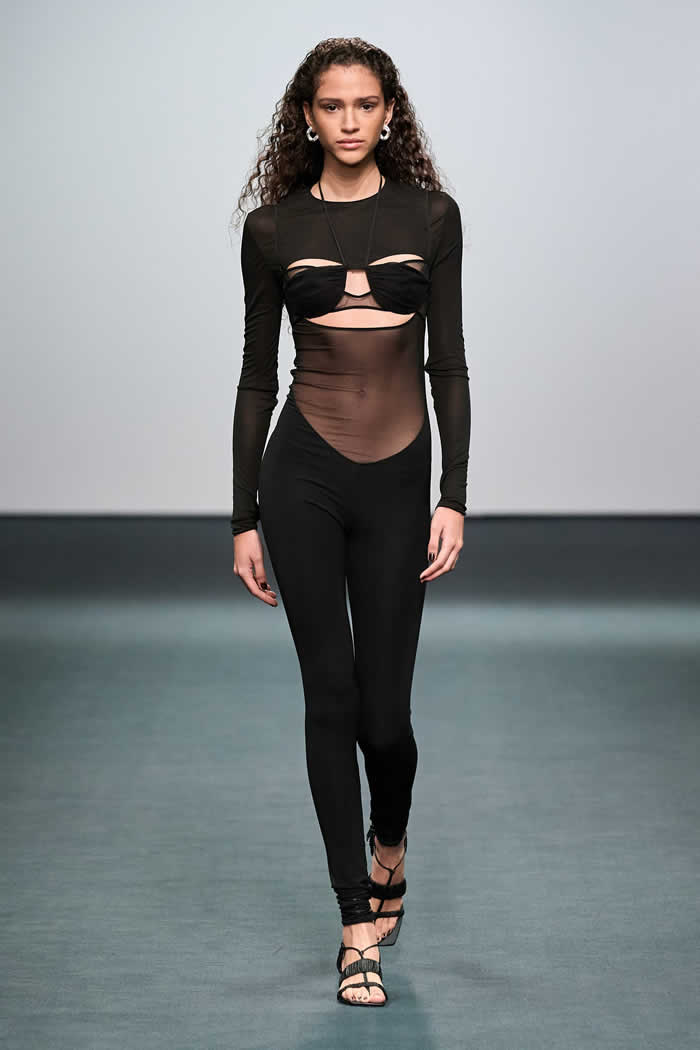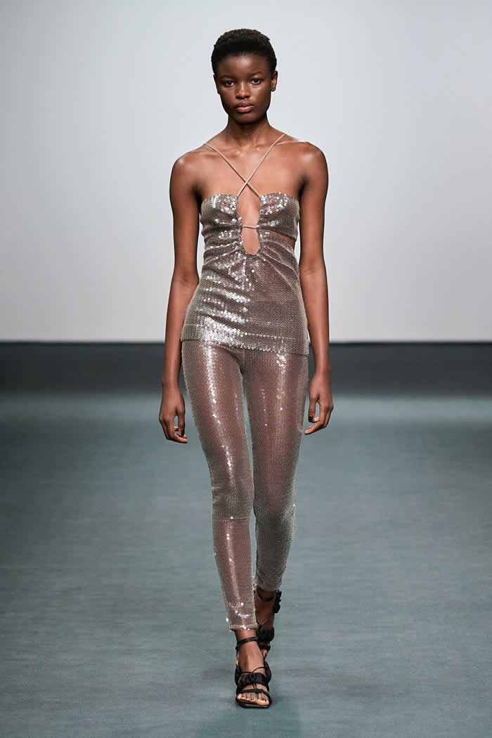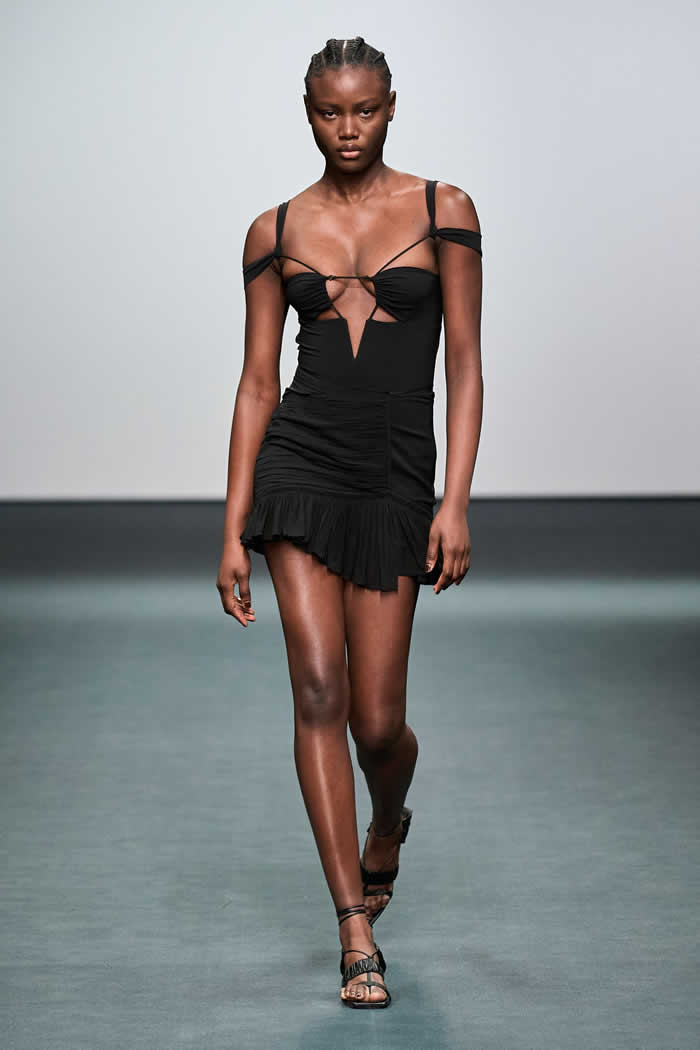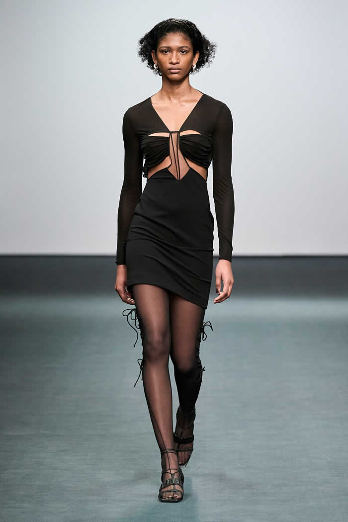 Dojaka proved how her lingerie-based aesthetic, with its delicately complex array of straps, bras, and cutouts, can now flex to encompass excellent tailoring, puffer jackets, and knitwear as well drop-dead, sinuously desirable long evening dresses.