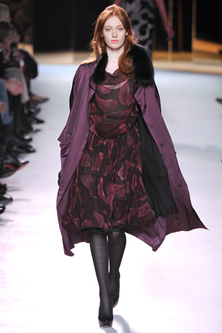 Like all great portraiture, classic or contemporary, Peter adorned his women in expertly mixed colors, bottle green against baby blue, pale pink with black or burgundy. He used the drama of a neckline or the tilt of a hat wide-brimmed rabbit fur styles, in this case to draw his women in softly vivid lines. Peter’s latest fall collection 2011 had an touch of Victorian modernity created with Parachute silk blouses were gathered high around the neck, and robelike coats, some with fur trims, fell off the shoulders in romantic dishabille. View the latest designs presented at Paris Fashion Week Ready-to-wear 2011-2012.