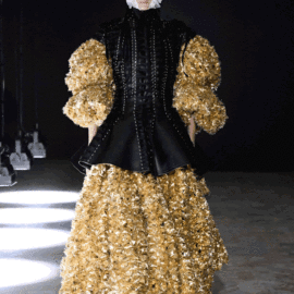 The show was held in Aoyama, Tokyo, at the Commes des Garçons headquarters, so many thanks to my colleague Saori Masuda of Vogue Japan who was in the room, and who fed back via email: “The atmosphere was very light, in a good way, with a good, positive vibe.”