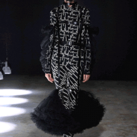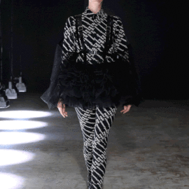 “For this collection, black is expressed through shadows,” said Kei Ninomiya in his notes. “I wanted to express the ephemeral strength and beauty of things that are present around us although we cannot see them clearly.”