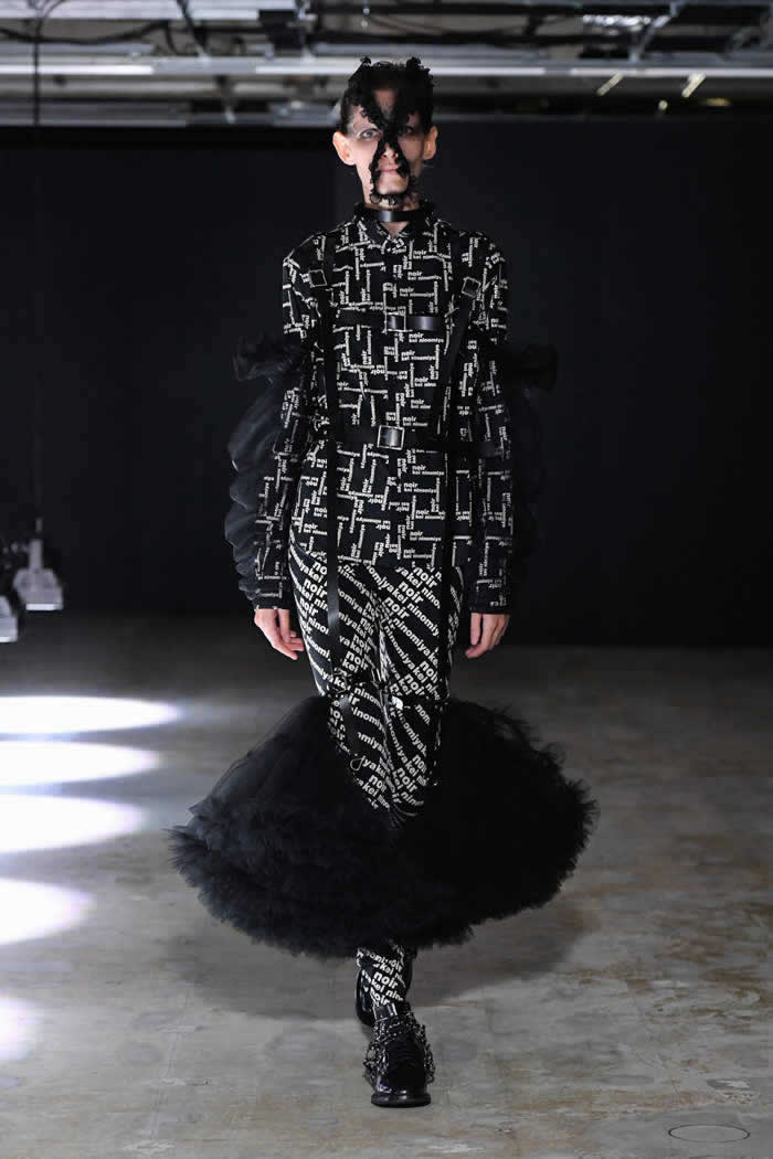 The idea of something casting a paler shadow than itself implied a reversed polarity of some kind, and the paler procession of pieces did indeed mostly cover the still-breathtaking territory we have seen Ninomiya explore before. Sometimes, as in Look 15, they also looked to break new-for-Noir ground.