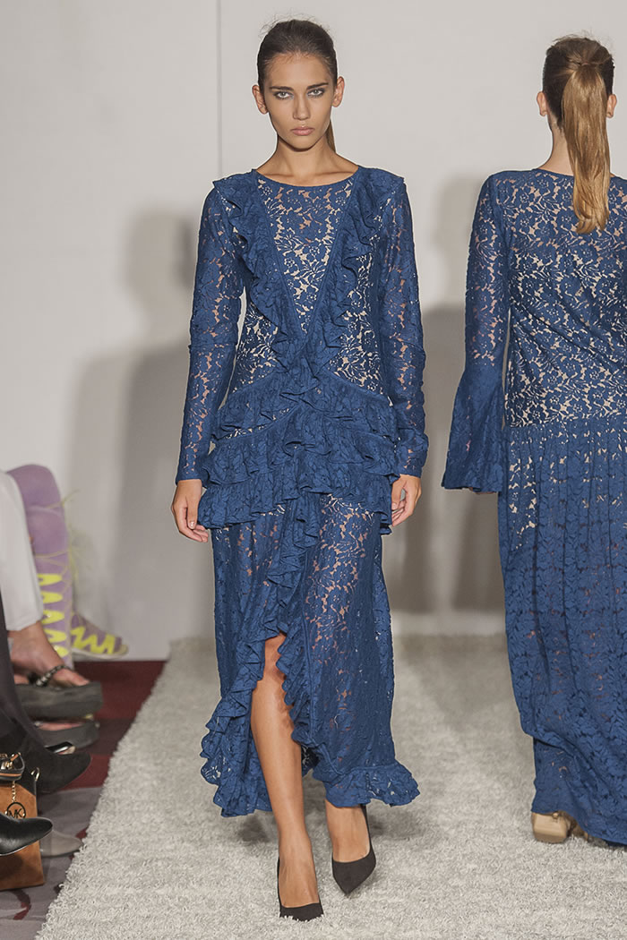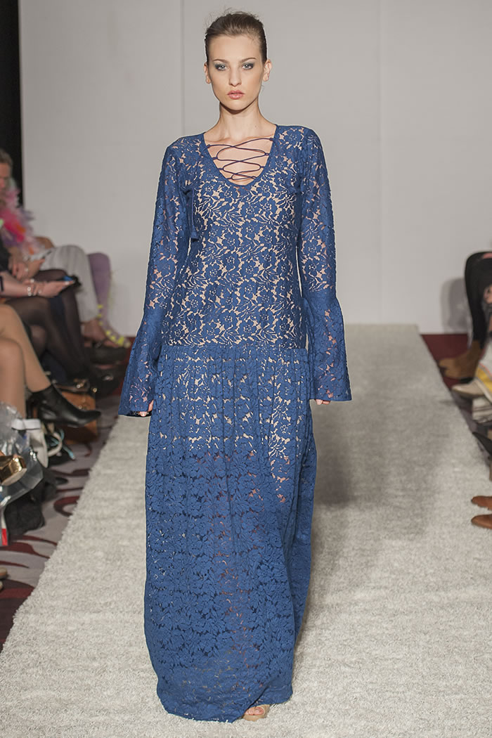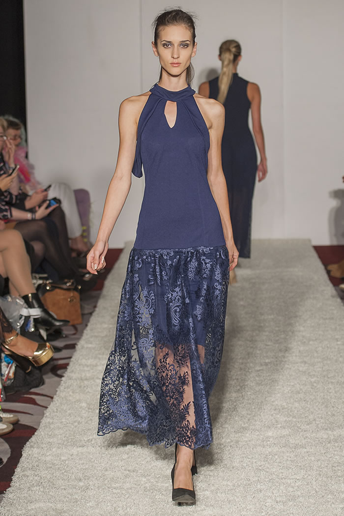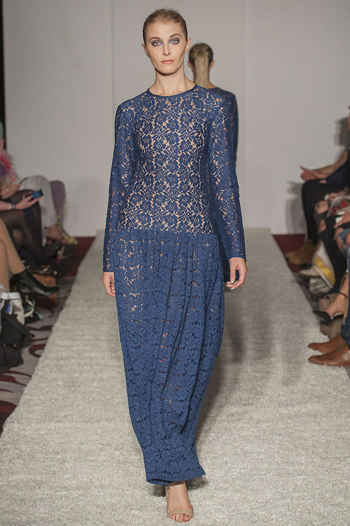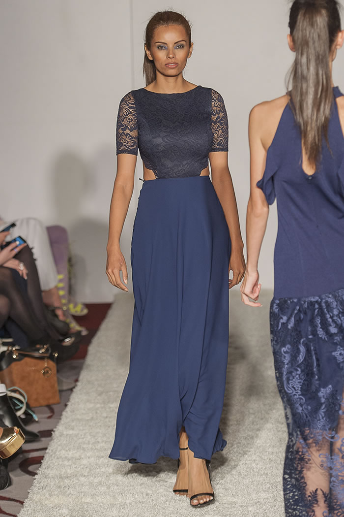 "Navy Blue" which describes both a bright and dark shade of Azure Blue combined with the tradition in European Art and ancient Persia. Omar Mansoor marries both points of inspiration thus drawing on his heritage and European traditions.The collection features full and short length dresses made up of vintagelaces, Crepe and Chiffons.By combining vintage fabrics alongside modern fabrics, Omar creates anelegant look for a woman, who embodies the self-confidence, high spirits and splendour.