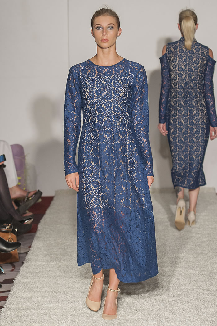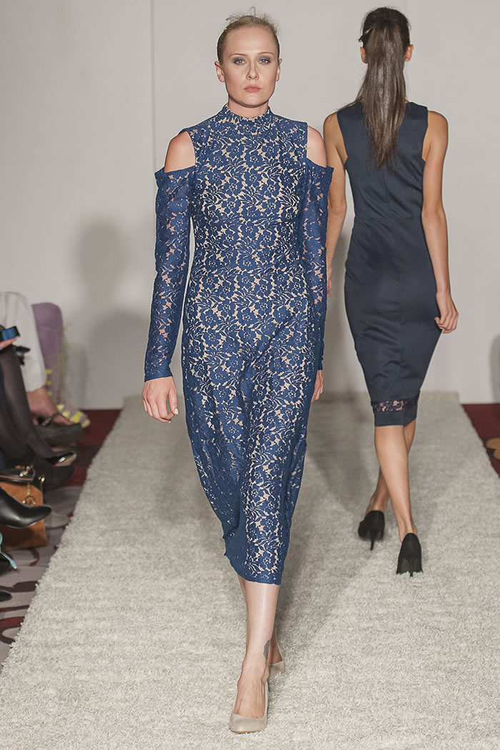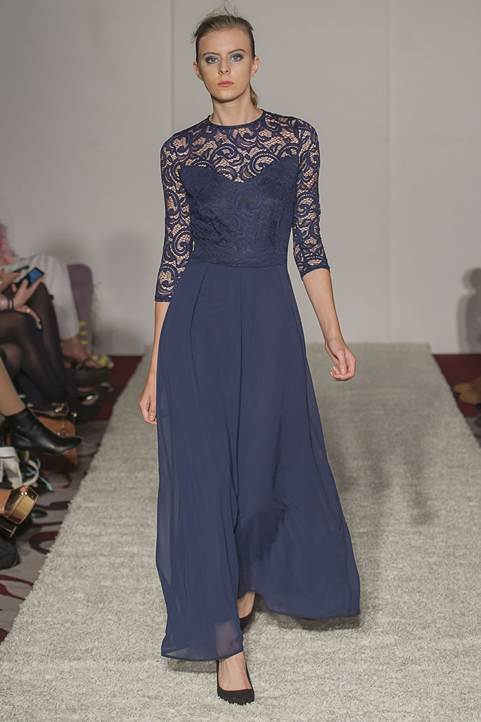 "Navy Blue" which describes both a bright and dark shade of Azure Blue combined with the tradition in European Art and ancient Persia. Omar Mansoor marries both points of inspiration thus drawing on his heritage and European traditions.The collection features full and short length dresses made up of vintagelaces, Crepe and Chiffons.By combining vintage fabrics alongside modern fabrics, Omar creates anelegant look for a woman, who embodies the self-confidence, high spirits and splendour.