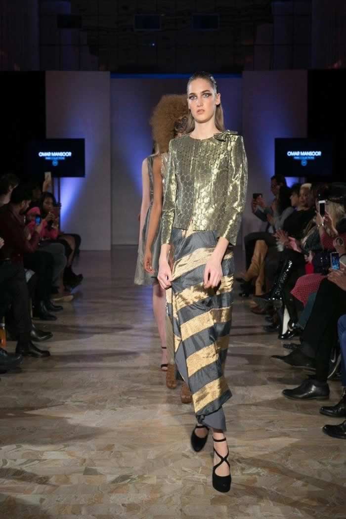 Omar Mansoor showcased second time at PFW with his Autumn/Winter 2016 collection featuring luxury ready-to-wear pieces inspired by Marchesa Casati, who was an Italian heiress, muse, and patroness of the arts in early 20th-century Europe known for her eccentricities. It was presented at the prestigeous Salons Hoche, off Champs-Élysées in mesmerizing atmosphere where it was well received by the fashion critiques and fashionistas attending the show. As the concept of dandy was expanded to include women, Marchesa Casati fitted the utmost female example by saying: "I want to be a living work of art". Omar is known for his fusion couture though the collection presented at PFW was a pret-a-porter. Omar picks up the contrasting combination of Pewter and Gold colors. The collection features full size ball gowns and knee length dresses made up of Koya Silks, Crepe Silks and Lured . Two of key trends predicted for PFW were ‘fabrication’ and ‘simplicity’, which were infused in the collection with hand woven luxurious KOYA silks and sleek cuts. Koya ( Cocoon in Urdu) is a movement headed by veteran Pakistani designer Maheen Khan. The Koya initiative that actually inspires to revive, re-introduce and even rehabilitate the dying craft of hand woven fabric. It aims to provide sustainable solutions to a group of artisans, living mostly in Karachi’s Banaras Colony, through creative consultation and pattern guidance to breathe new life into this dying craft. The collection can be viewed at the Paris showroom at Models Vêtements femme 106 Avenue Albert 1er 92500 – RUEIL MALMAISON