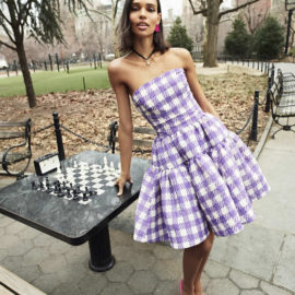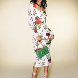 Flowered fabrics take center stage in the collection, with geraniums and morning glories blooming in shades ranging from bright white to soft ivory, and delicate pink to deep red. These floral motifs adorn cotton dresses that gracefully skim the thigh and graze the calf, with sleeves that are sheer, long, puffed, Juliet, or sometimes, not there at all.