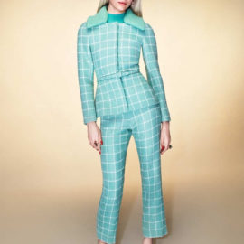 The color palette of the collection is reminiscent of autumnal hues, with sage, sienna, and safflower lending a seasonal softness to statement outerwear. Patchwork patterns adorn day dresses, combining different colors and textures in a harmonious blend. Tailored tweed suits in aqua, rouge, teal, and grape with ivory accents exude a crisp and classic look, showcasing the brand’s signature attention to detail and refined aesthetic.
