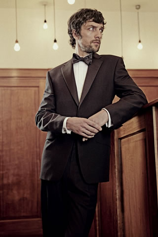 Source: Slim black one button evening suit with notch lapel (p9xl/9369/g64/b), slim evening shirt with "marcella" bib front (p9xl/591h/h03/w).