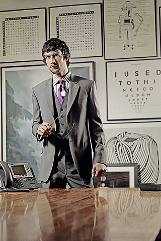 Source: Slim grey two piece suit (p9xl/9337/g57/l), with optional waistcoat (p9xl/983d/g57/l), black stripe double cuff shirt with contrast cuff (p9xl/511d/h44/2).
