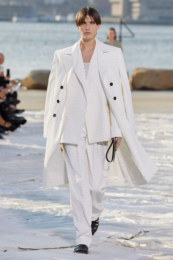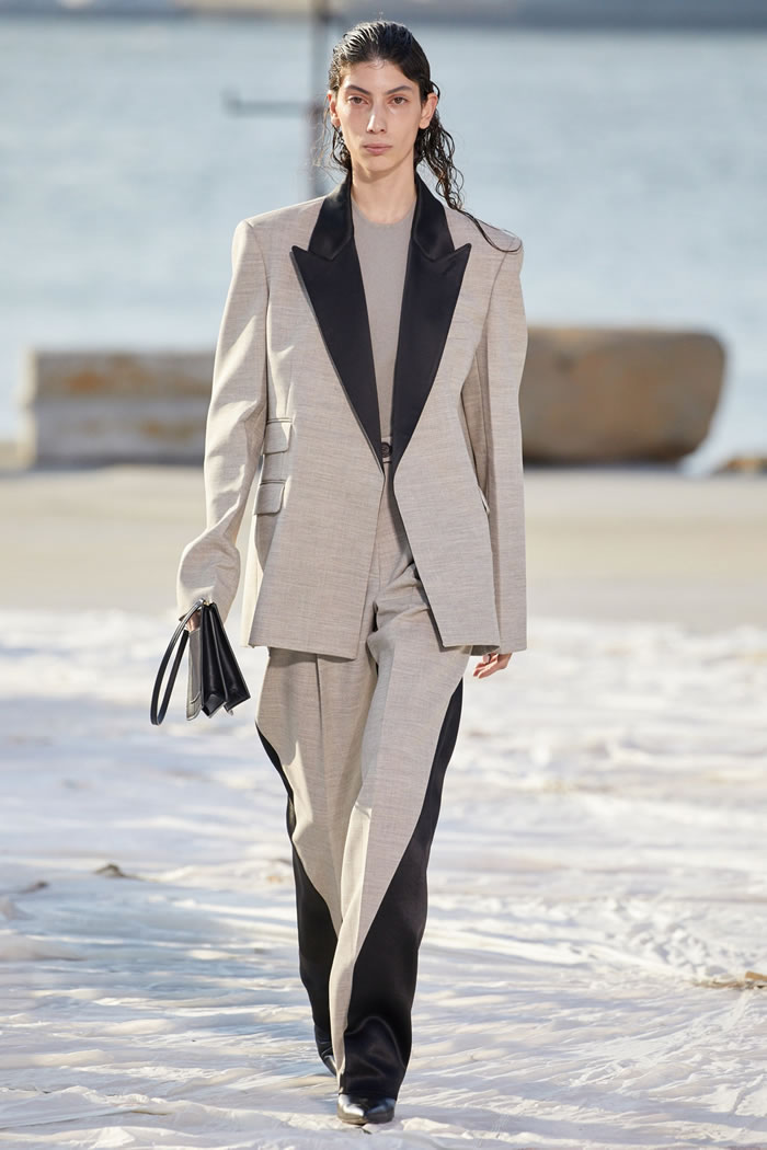 Though he’s been a minimalist from the start, when analyzing his early work with more experienced eyes, he decided to pare it back and cut out its excesses. The four-piece suit, which he’s made a signature, now features a lighter-weight pleated skirt than in seasons past because customers had told him that there was too much fabric around the waist.