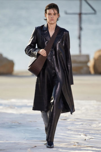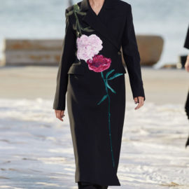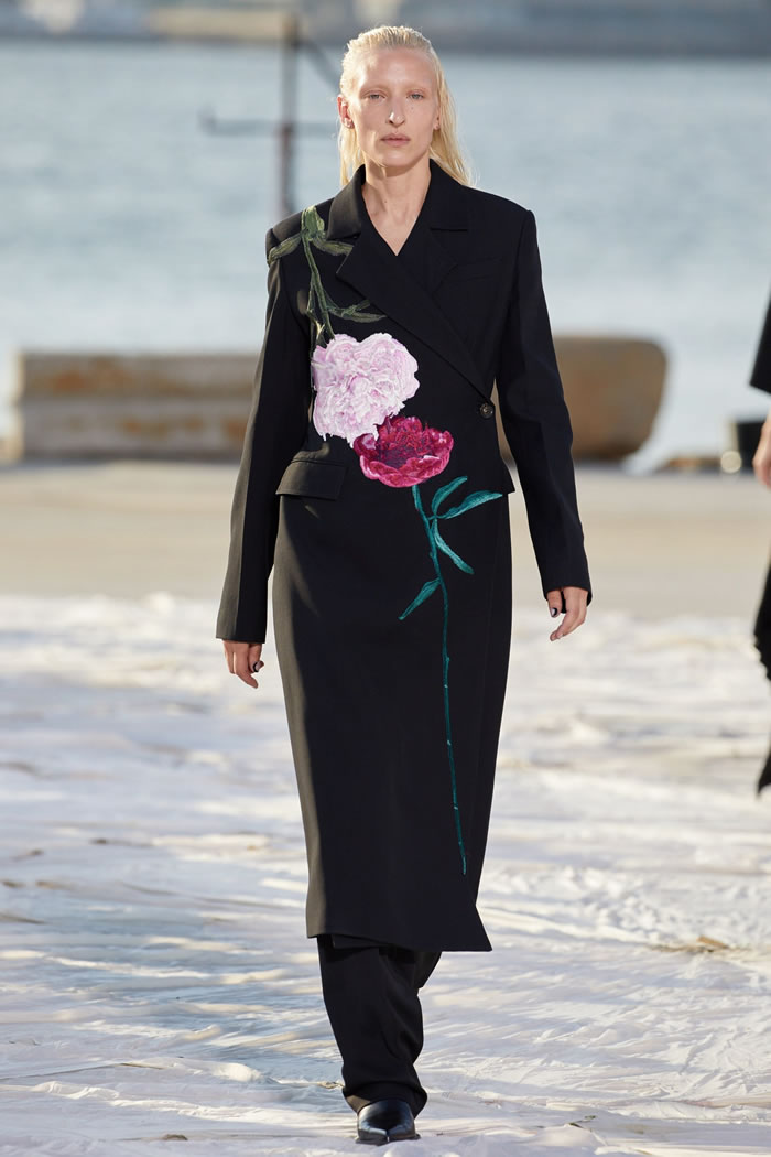 Then he went further back. “We’ve been thinking about the people that came before us,” he said backstage. Looking at photographs of his grandmother’s church outfits led to an exploration of the traditional Vietnamese ao dai, which he added lapels and closures to for a side-buttoning coat. An early snapshot of his mom and dad in which his mother holds a rose inspired the rich embroideries on the finale pieces.
