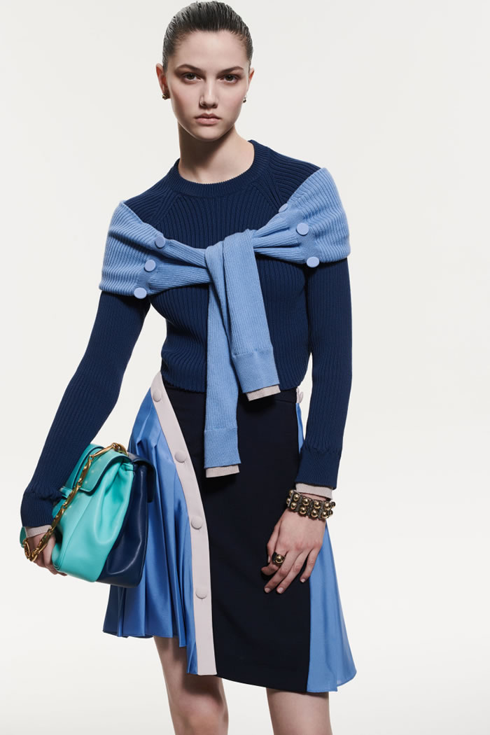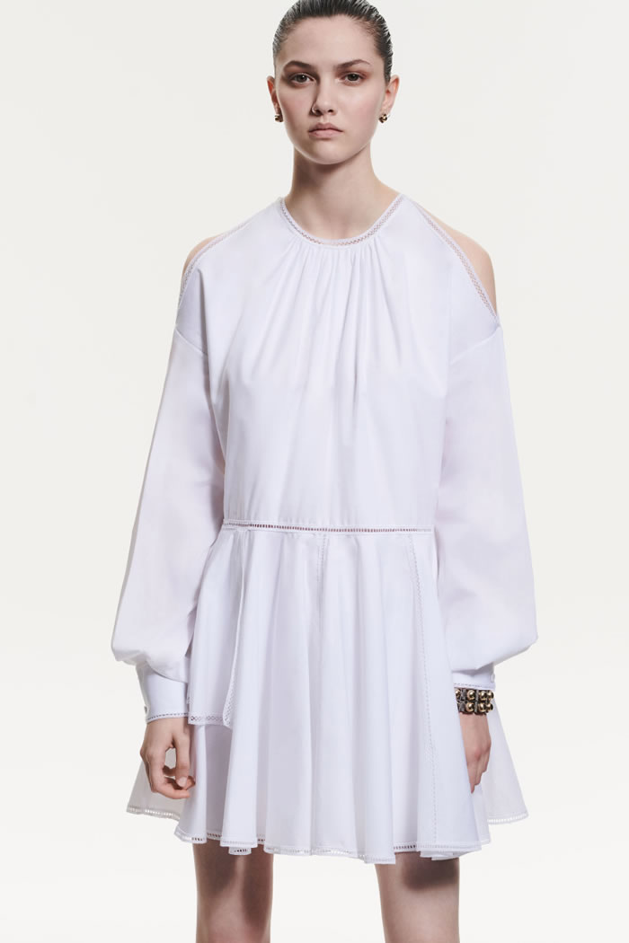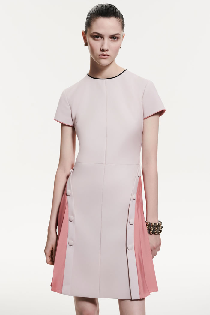 There was a ’60s Mod feeling to the collection, too, with Templer whipping up skater skirts with hole-punch details and grommeted belts. His neat and elegant A-line dresses had pleated side panels, a contrast of strict and soft.