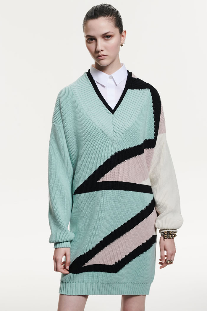 Karl Templer, the brand’s artistic director, looked at dualities, splicing the traditionally masculine with the feminine, and giving the collection a Mod, Space-Age spin.