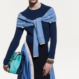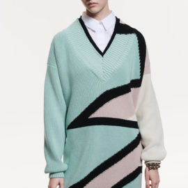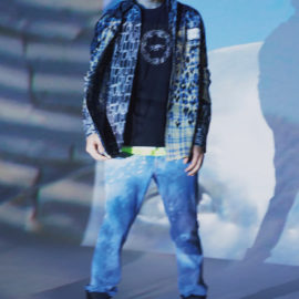 Karl Templer, the brand’s artistic director, looked at dualities, splicing the traditionally masculine with the feminine, and giving the collection a Mod, Space-Age spin.