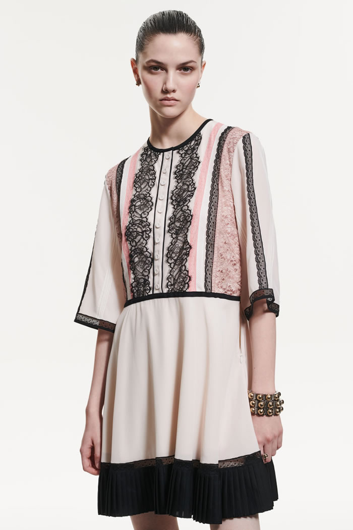 A long and silky baseball jacket doubled as a minidress while a fluttery, paneled lace skirt married happily with a chunky ribbed-knit sweater.
