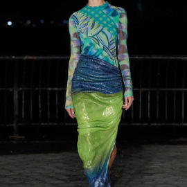Fashion—worn-out notions of propriety notwithstanding—is the ideal space to pose questions about identity, because so much is coded into our clothing choices. Why does it still startle, in 2021, to see a young man in lipstick, or wearing a dress? Gurung’s collection asked us to check any tired distinctions about gender rules at the door.
