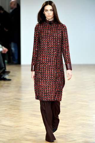 The collection’s inspiration was deeply rooted in past yet it was revolutionized in such a way that made it look and feel new. For example, the fiery red maxi tweed patch worked into a coat was actually something from the fifties yet it was created with a strikingly new touch, which made Pringle’s collection 2011, Artful and crafty. See the latest collection of Autumn Winter seasons for 2011 fashoin.