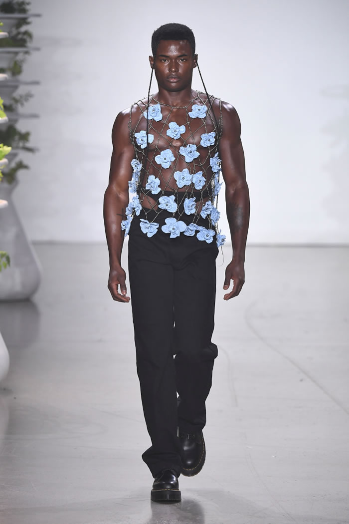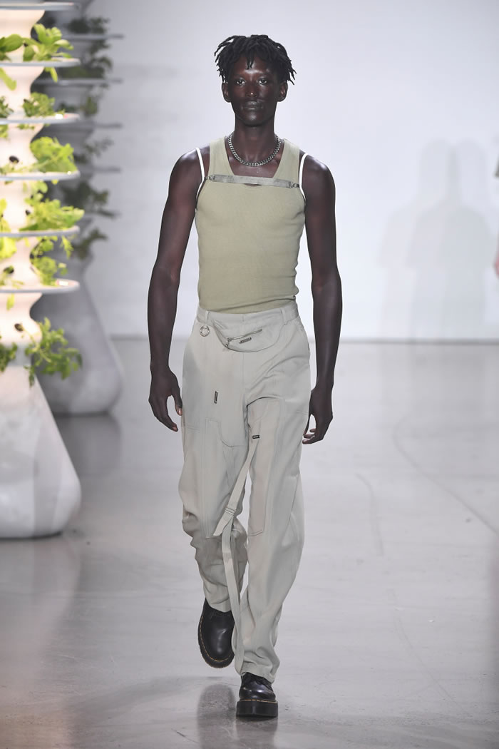 Bountiful mini hydroponic vertical gardens, made from ocean-bound plastic called Farmstands, transformed the runway for the New York-based inclusive brand dedicated to showing the city’s rebellious style.