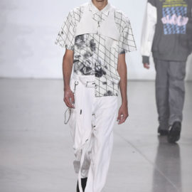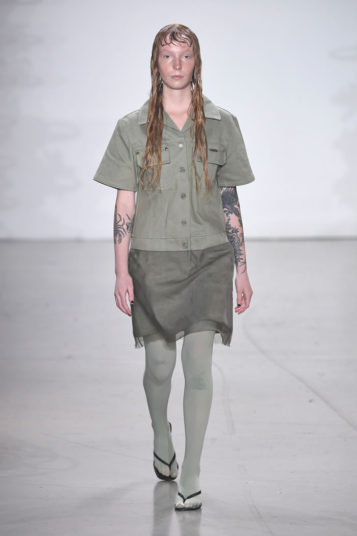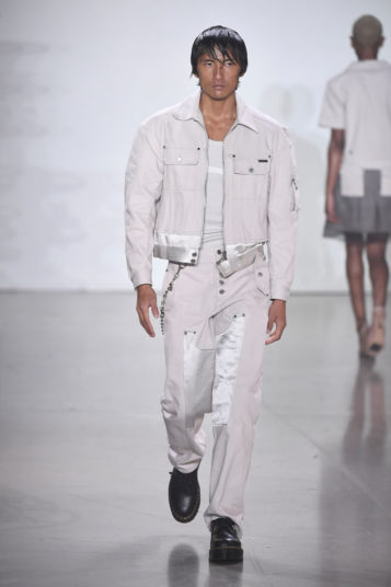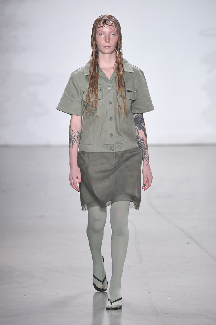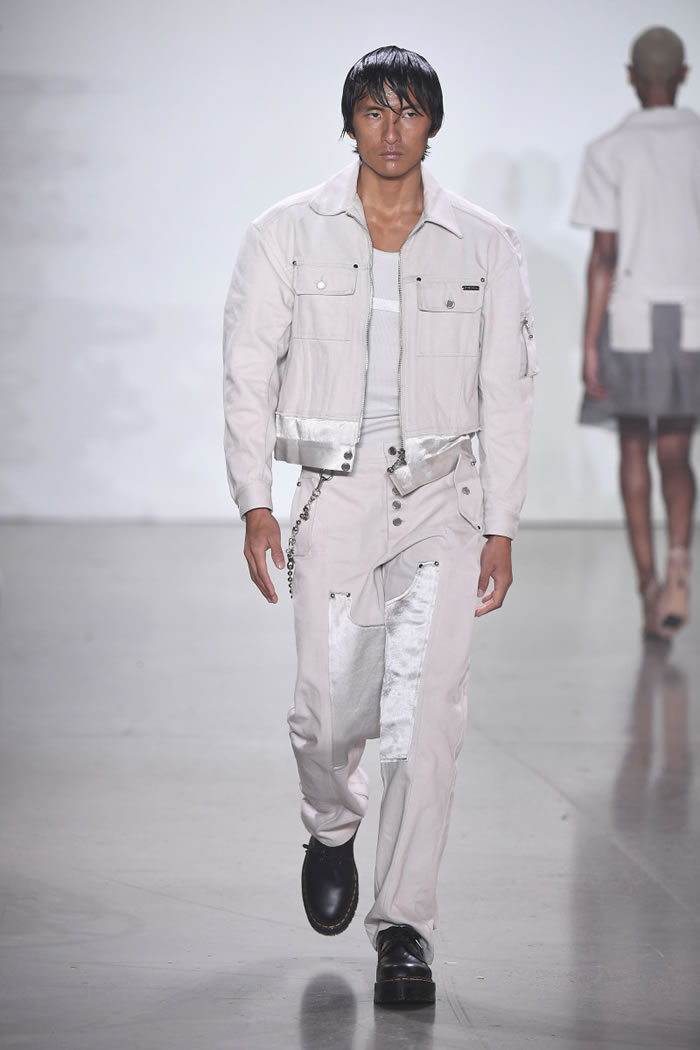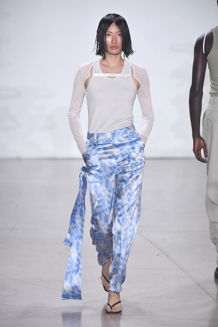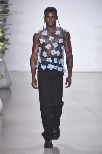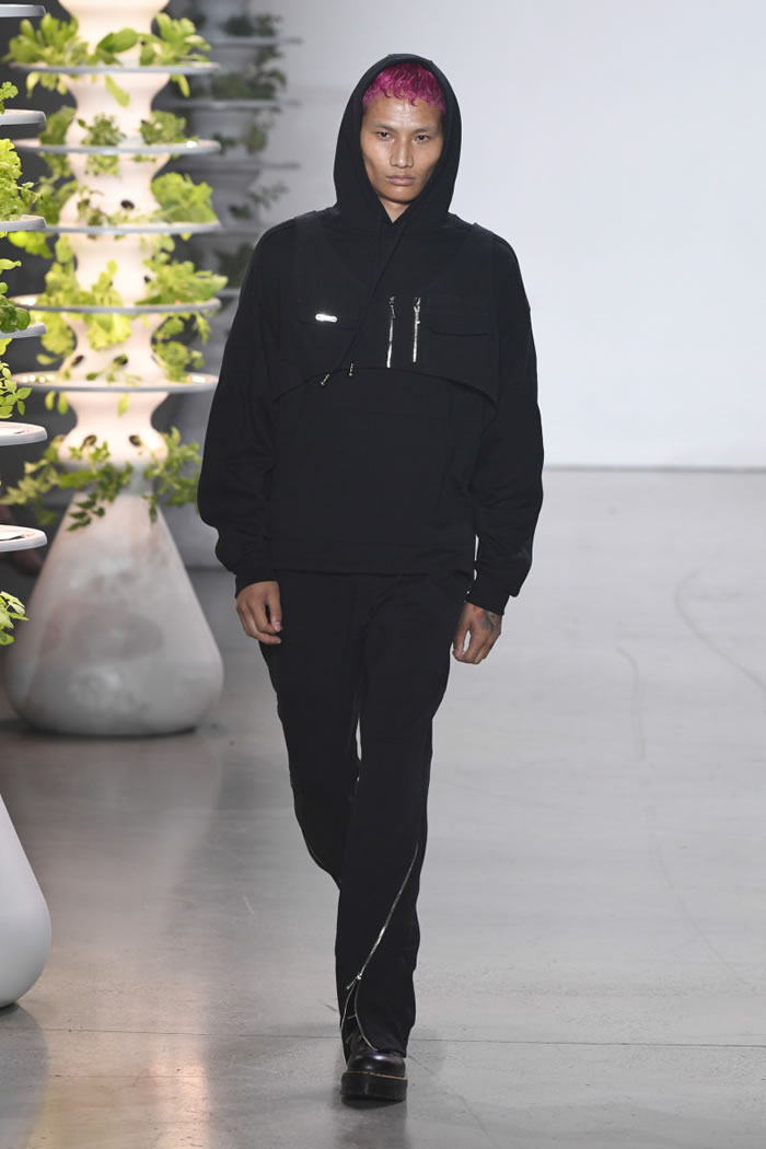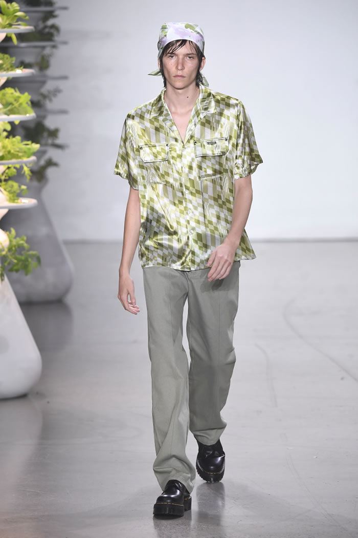 Staged at Spring Studios, Private Policy’s show began with an art installation runway — creative directors Haoran Li and Siying Qu worked with Lettuce Grow to create its own utopic vision for the future.