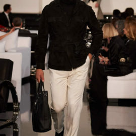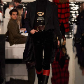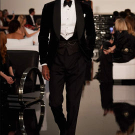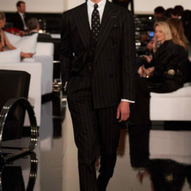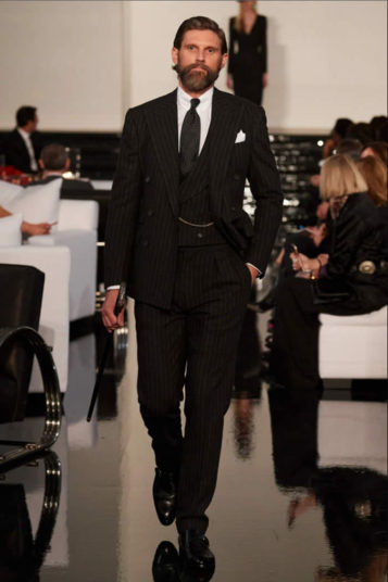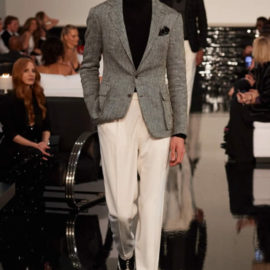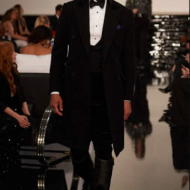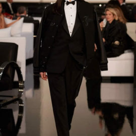 For the show’s finale, Vittoria Cerreti came out in a black tux with a Yankees cap on her head and a baseball jacket tossed over her shoulders. It was a nod to Lauren’s Bronx boyhood stomping grounds, but the alignment didn’t fail to telegraph another detail. The Yankees and Ralph Lauren are both American institutions.