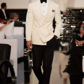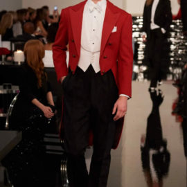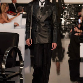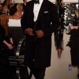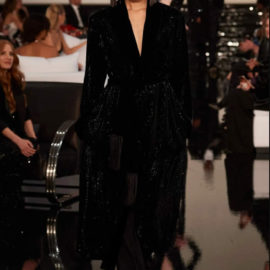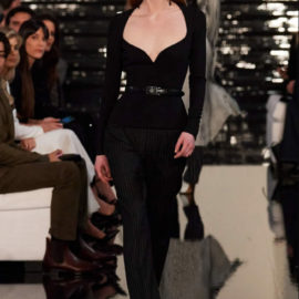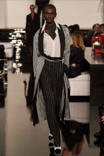Driving home the timelessness and elegance of all of it was Lauren’s multigenerational cast: Shalom Harlow and Laetitia Casta mixed with newcomers, and Tyson Beckford, the face of many a 1990s Ralph Lauren campaign, took a lap of his own, stopping to shake the hand of the designer’s brother Jerry along the way. A special shout-out to the young model who carried his Gilded Age tailcoat with such aplomb.