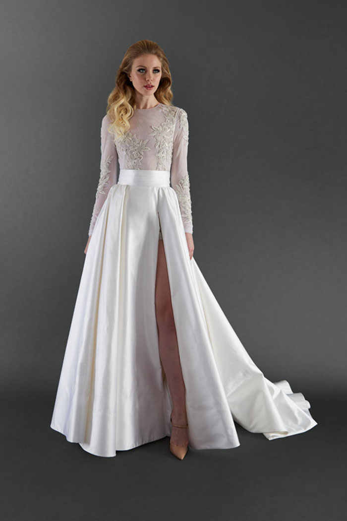 Randi Rahm’s spring bridal collection of versatile, mix-and-match and customizable couture pieces is the perfect fit for a modern bride who wants to change up her wedding day look, or even wear it again.