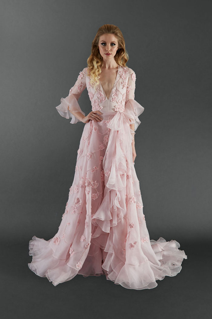 Randi Rahm’s spring bridal collection of versatile, mix-and-match and customizable couture pieces are the perfect fit for a modern bride who wants to change up her wedding day look, or even wear it again. She also re-created a white version of the “Rose Gown,” recently made famous by reality show “The Bachelorette,” to the collection for good measure, because who doesn’t love a crowd favorite.