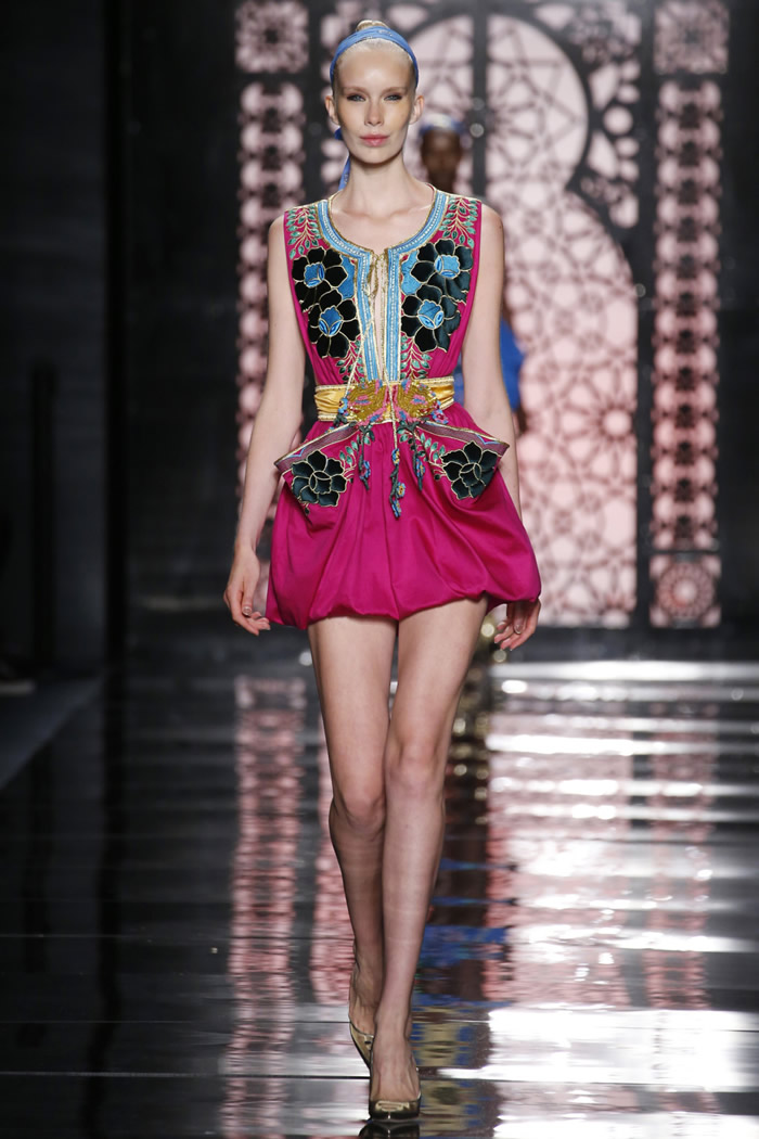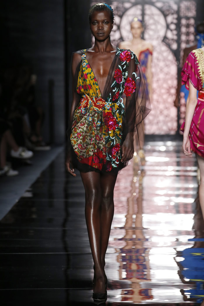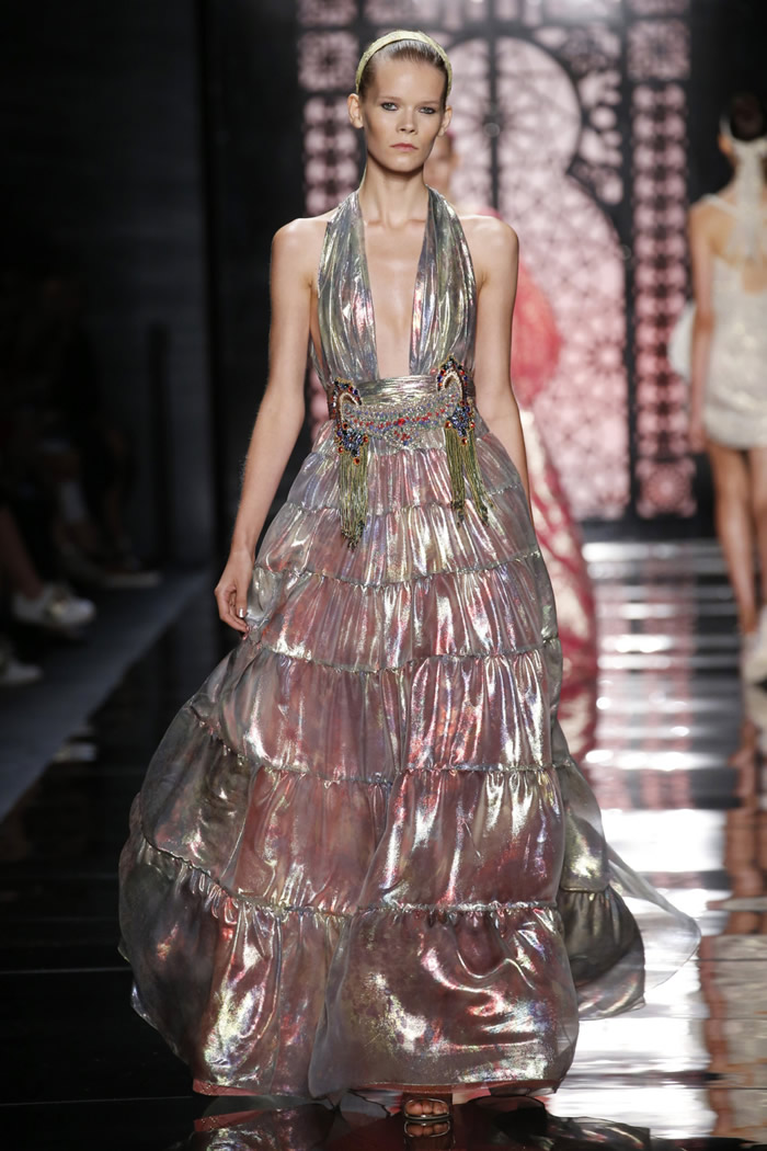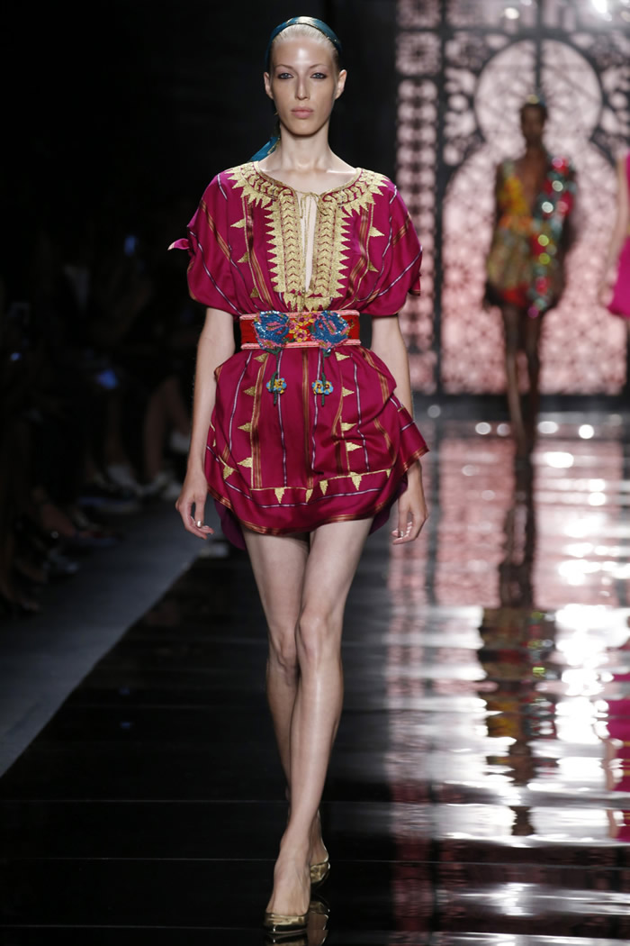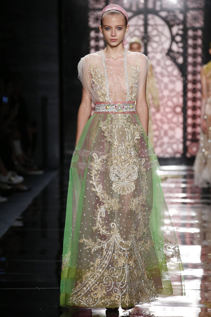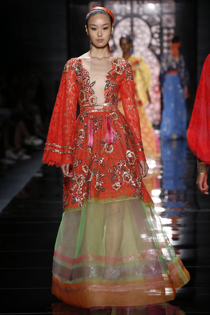 “I just want to take you to my world,” read the show notes at Reem Acra’s spring 2016 show. Acra’s world is usually ornate and over-the-top, her gowns distinct for their intricate beading, embellishments and embroideries. For spring, she flew us to a Middle Eastern glamour utopia, where some of the gowns were definitely fit for a queen -Acra is known to dress many royals – yet at times she got overly fanciful. Disney princesses came to mind.