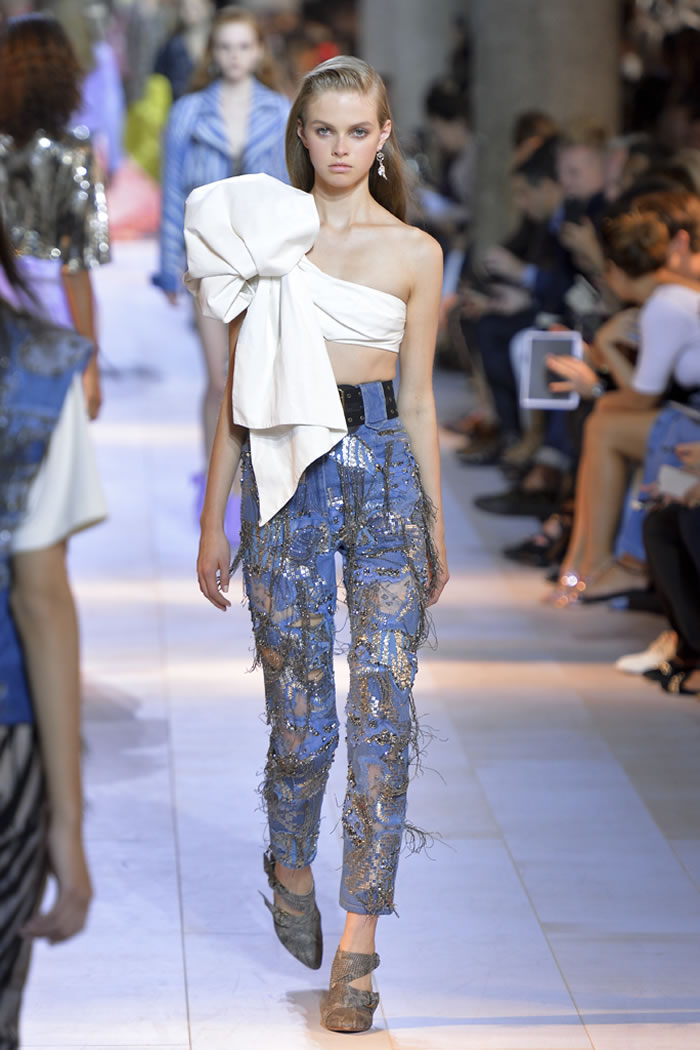 But to be frank, Dundas also dipped into the deep well of questionable taste associated with the Eighties: bleached and tinted denim suits and separates, chain mail tops and miniskirts, and painted-on “Pretty Woman” dresses.