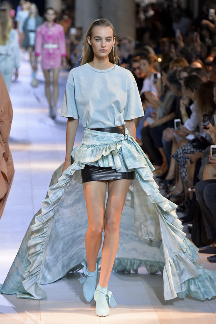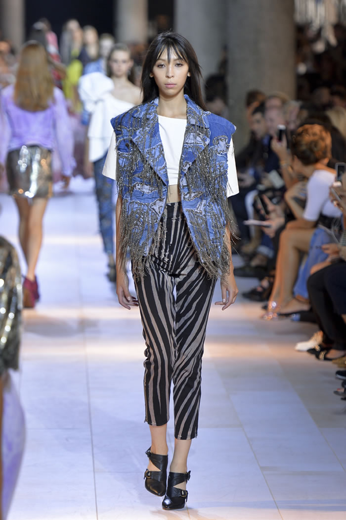 To be fair, the Norwegian designer made good on the above statements, delivering a strong injection of youth and street savvy along with a more freewheeling approach to dressing. To him, a sleeveless biker vest and a rugged utility parka are the pashminas of today, tossed over cocktail dresses, a billowing silk skirt, loud leggings, whatever.
