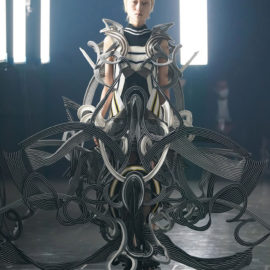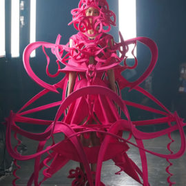 Sculptural swirls protruded from the body in all directions, creating a riot of color and shapes that one might expect to see in a futuristic film.