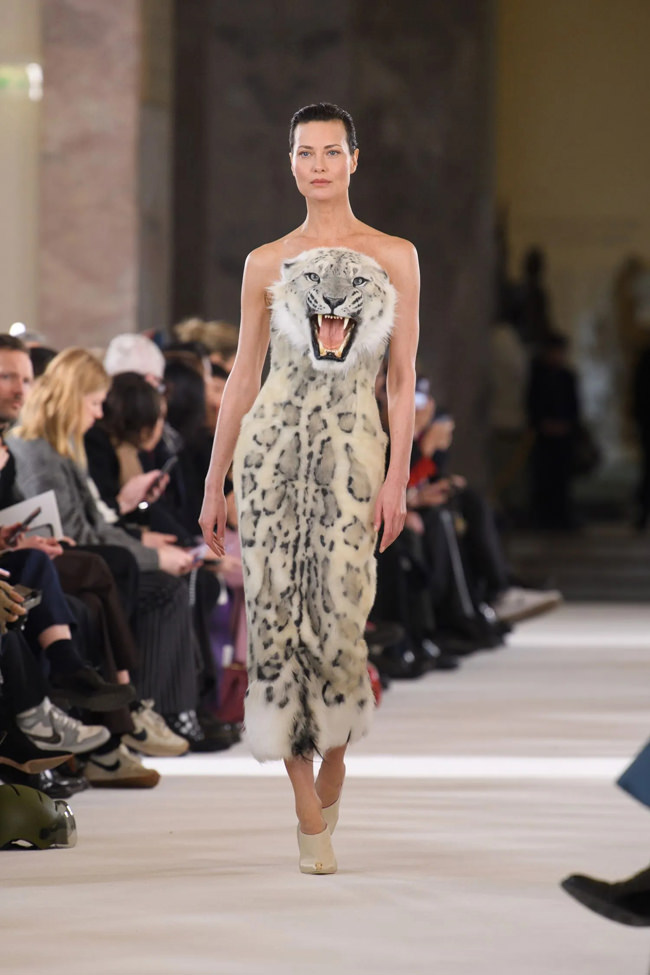 The ‘leopard’ that leaped from Shalom Harlow’s chest, the ‘wolf’ that stared from Naomi Campbell’s coat, the ‘Lion’ heads sported by Irina Shayk on the runway and Kylie Jenner in the front row: Daniel Roseberry blew up the internet with his fake Schiaparelli taxidermy pieces this morning. It was predictable that they’d instantly take on— as it were—a controversial life of their own.