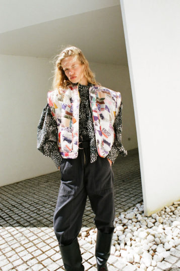 Paolini kept her patchwork streak going, too, turning out a new version of the bestselling Henrietta coat in a joyful-looking crazy quilt pattern, alongside a 1980s quilted and pin-tucked denim jacket with a big shawl collar, which added a touch of attitude to the homespun.