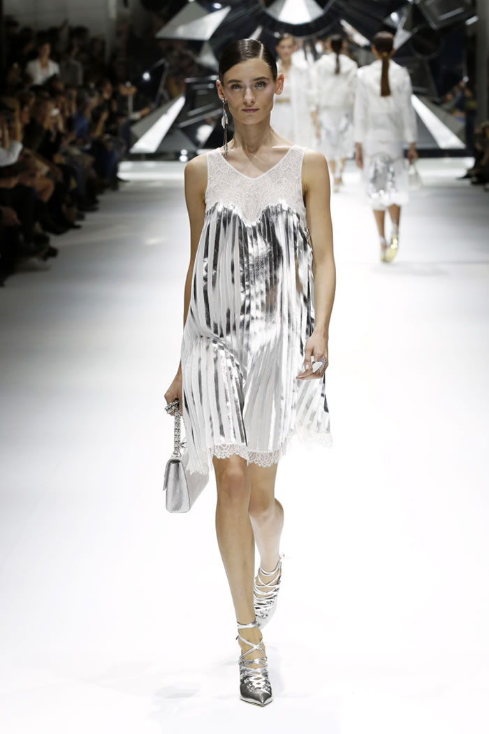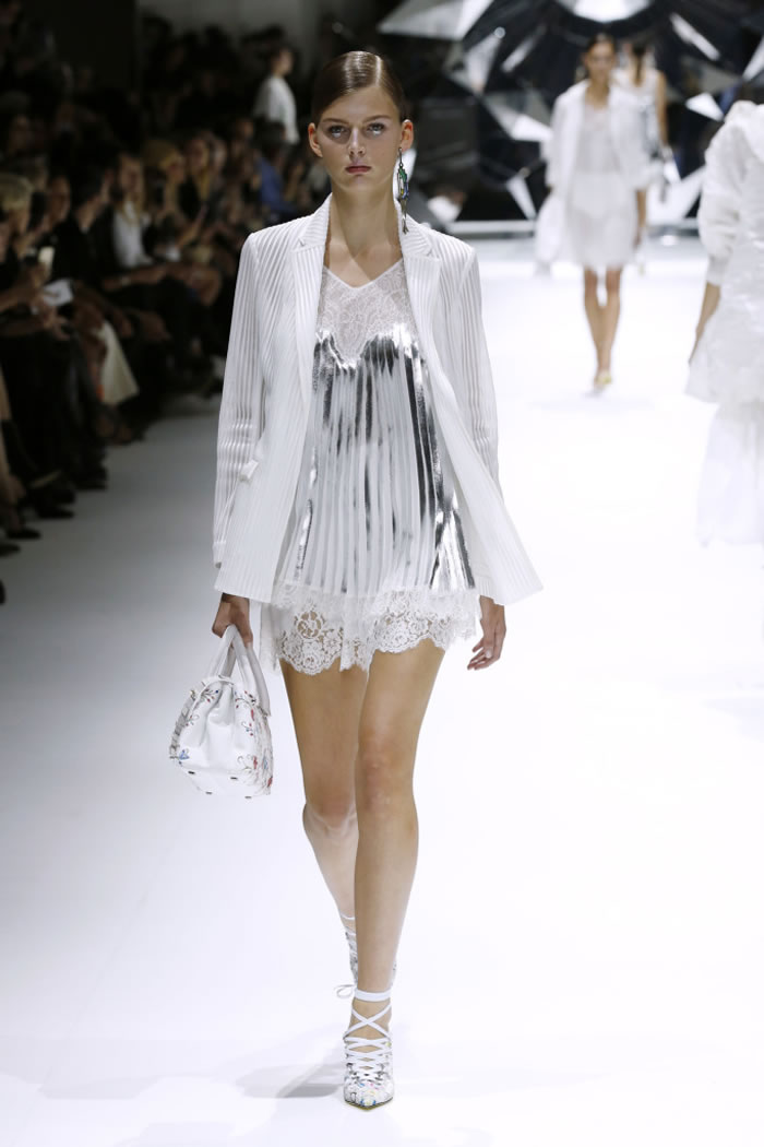 On-trend white Windbreakers in crinkly technical materials were layered over lingerie-inspired slips, the sleeves of the jackets pushed up to accentuate the Parisian attitude. But silver leather fringing worked into some of the lace pieces felt incongruous.