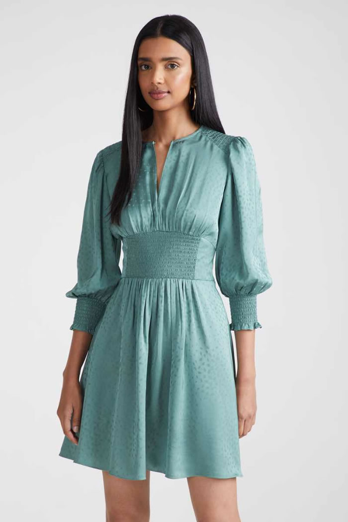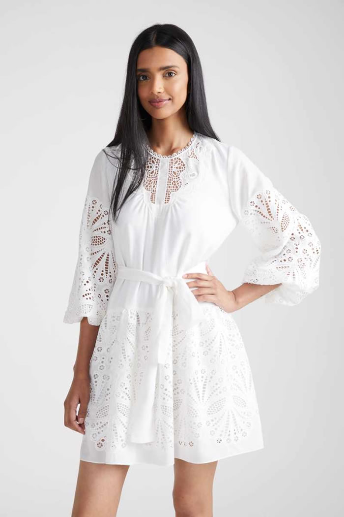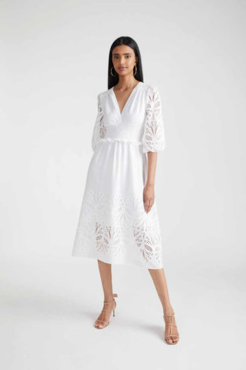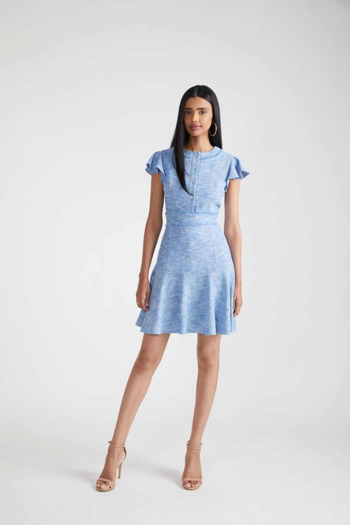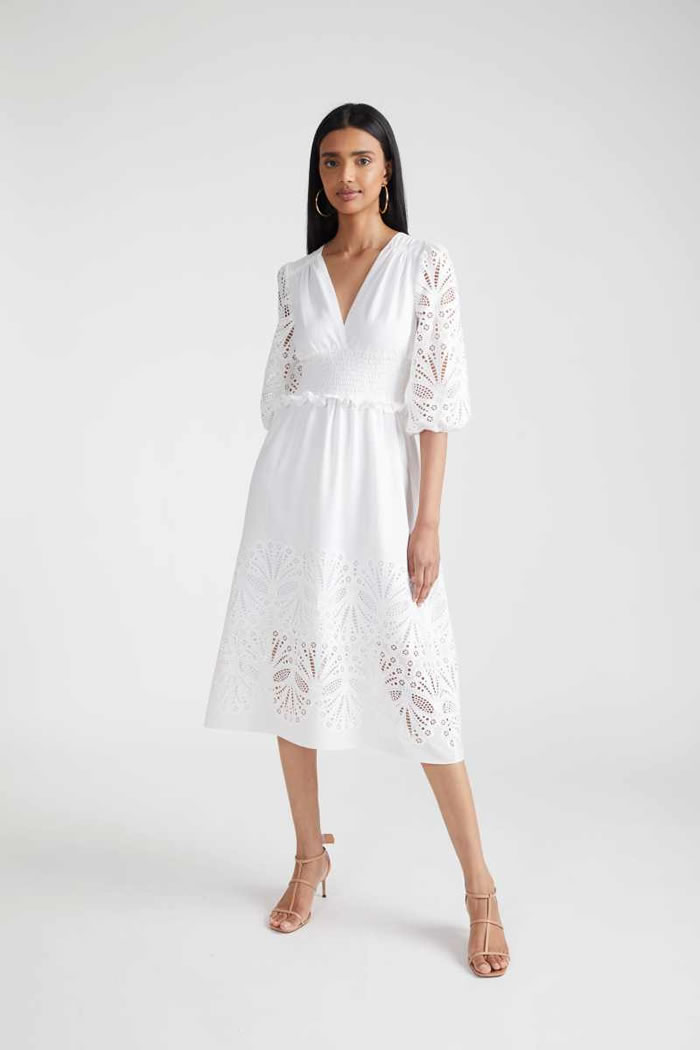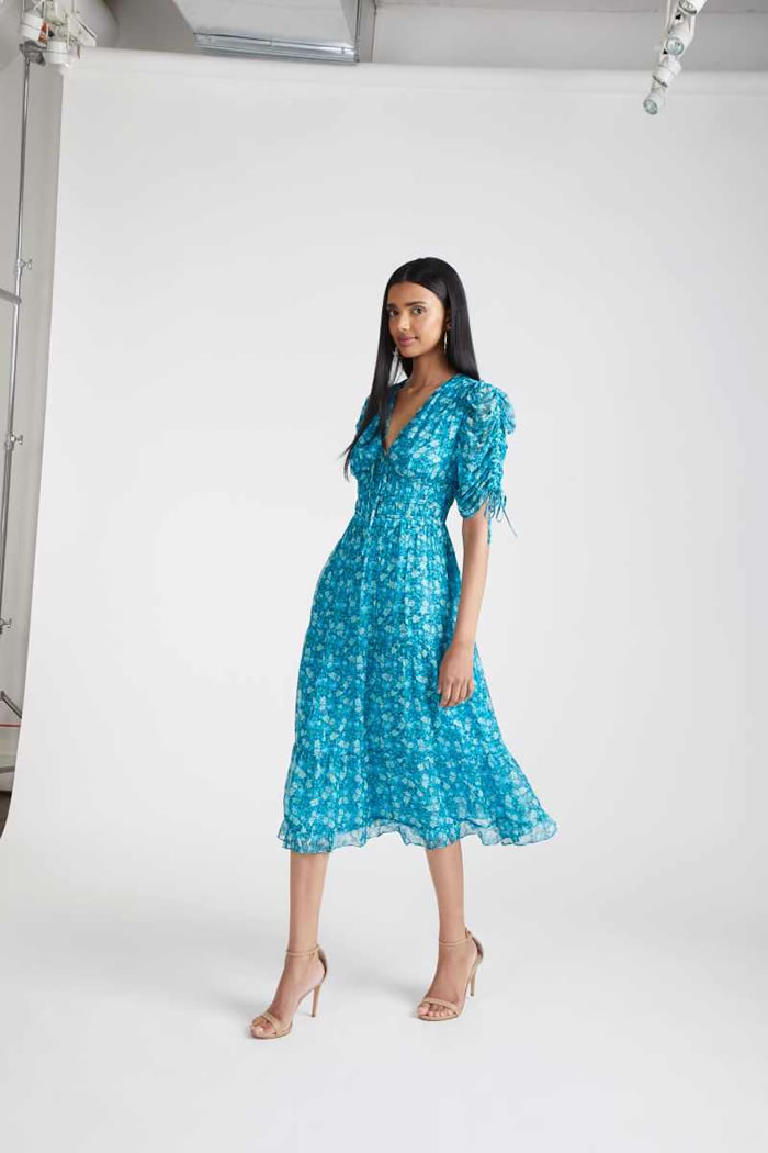 Indeed, the whole Shoshanna gang was here: bishop-sleeve minis, ruching and 3-D appliqué, broderie Anglaise, soft three-piece suiting, and the type of upscale craft pieces (woven bucket hats!) that you could only dream of finding at a market stall on your next summer sojourn.