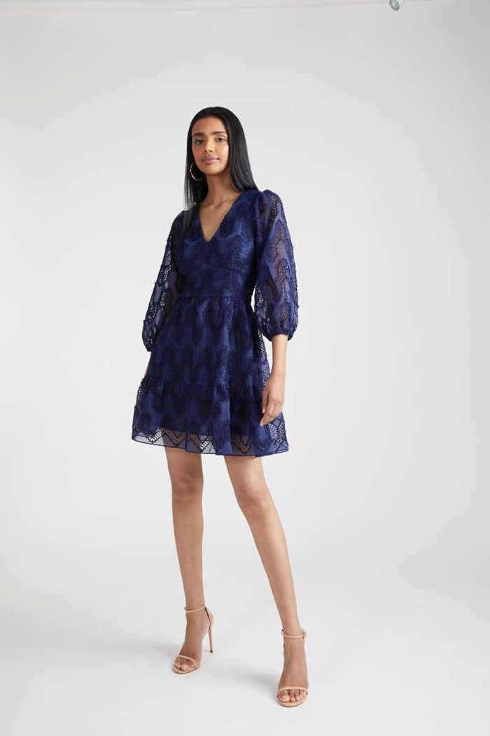 Opening the show, aught-era supermodel Gemma Ward wore a pretty-as-a-picture flock adorned with flowers, signaling the feminine and delicate pieces that would follow suit.