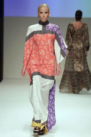 The geometric patterns of the outfits replicated Islamic culture and art, while indulging in prints representing painted glass motifs as well as digital prints resembling cellular phone circuit boards.