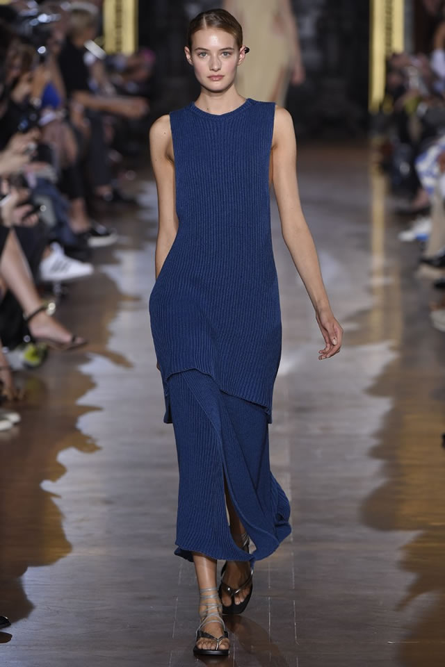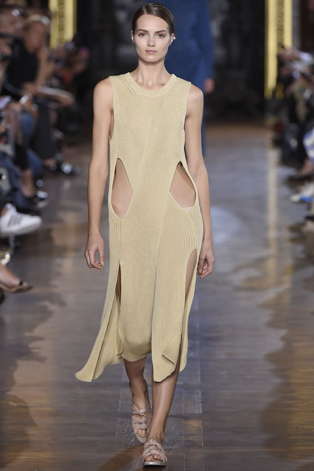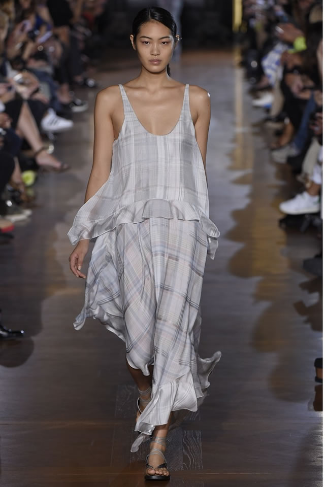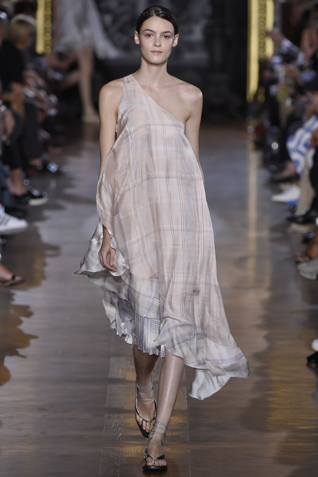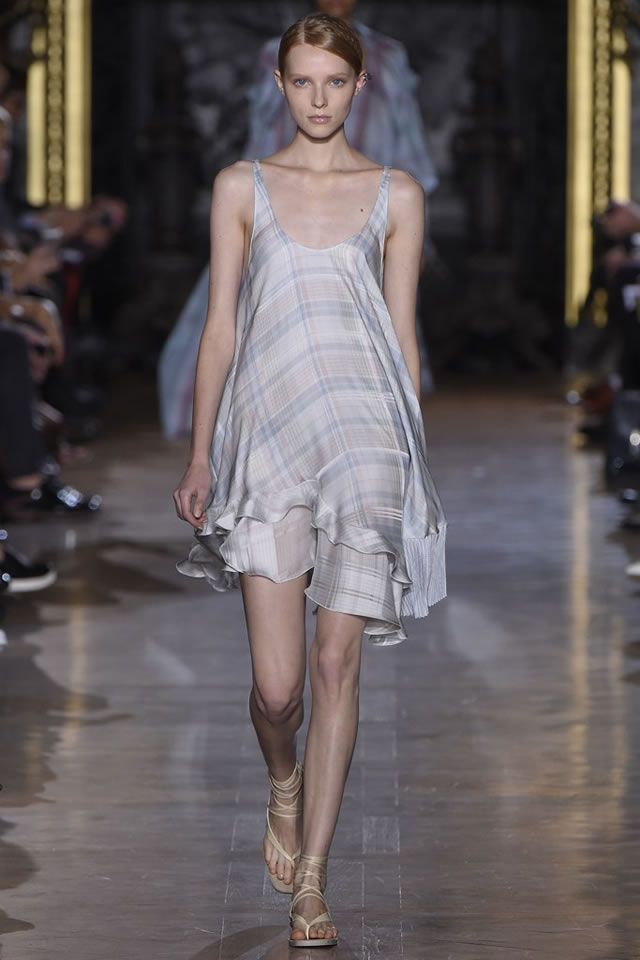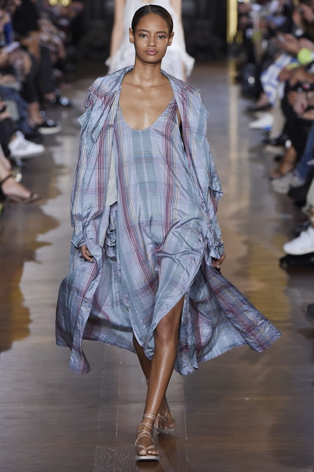 Summer ease is nothing without a little flou, delivered here in delightfully floaty dresses and separates in unfussy pastel plaids. And Stella McCartney updated the Sweater Girl to fabulous effect, deftly slashing and knotting dresses, tunics and skirts to reveal glimpses of skin. The result was a confident, relaxed sensuality.