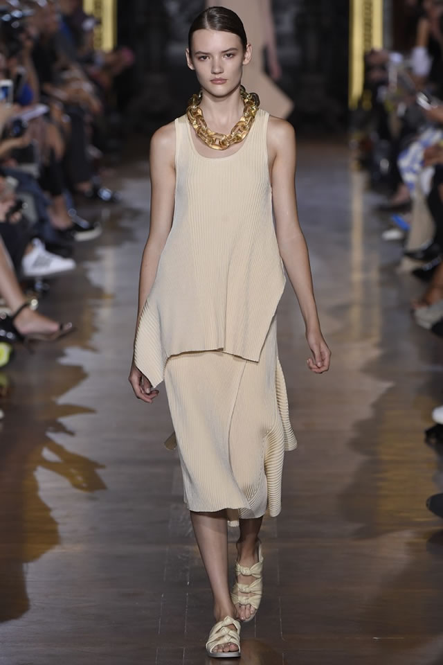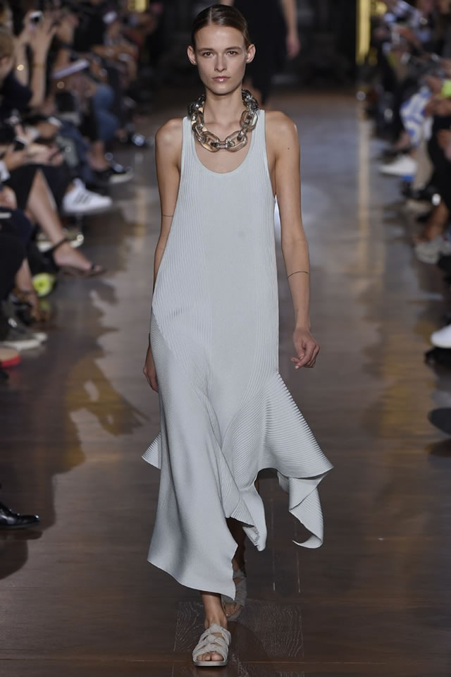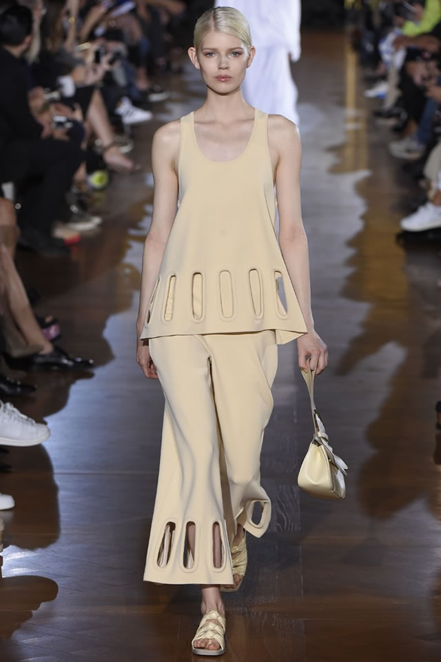 That long held ethos served both the designer and her clients beautifully for spring, as she developed a number of fresh, appealing motifs. McCartney is big on ease, especially for summer  which is what she calls her runway collection  and sought to capture “the season’s true spirit,” according to her program notes. That meant graceful, unfettered silhouettes that were shapely  but not tight  on tops over pants and skirts cut with volume.