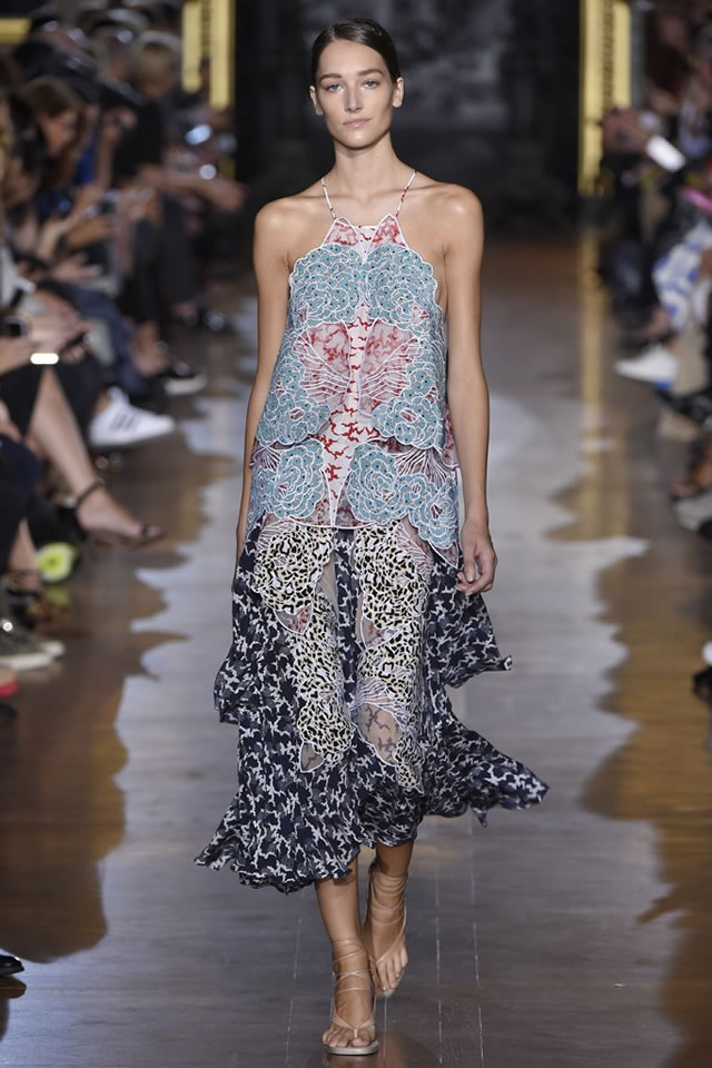 Stella McCartney RTW Spring 2015 collection seems like formidable gang of seductresses laced into corsets, leather pants and jeans cut.