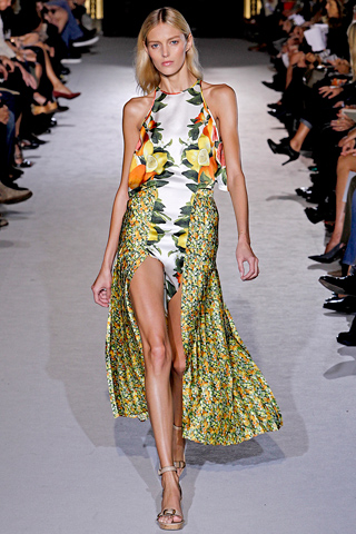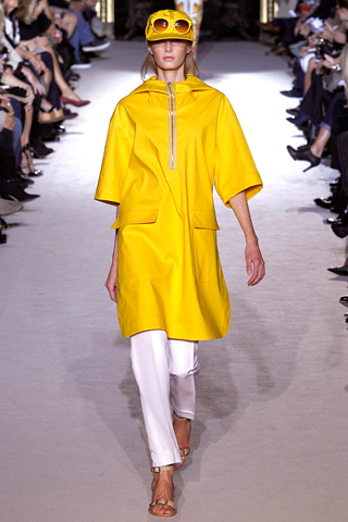 In all season, there was an easygoing 1970’s feel to Yves Saint Laurent inspired suits in creamy white, pale blue and breathy pink professional with a bit of provocation in open-backed smoking vests and knife-slit skirts. Stella McCartney offers its new collection for spring/summer 2011 catwalks of Paris fashion Week, the trend and minimal and graceful.  McCartney very quickly hit her stride again with punchy prints of grapefruits and an equally citrusy yellow poncho first bananas at Prada now lemons and limes at McCartney there’s certainly no risk of scurvy come Spring 2011. Chic practicality with a dash of fruity fun Stella’s polished, modern woman would definitely approve.