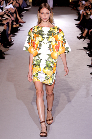 In all season, there was an easygoing 1970’s feel to Yves Saint Laurent inspired suits in creamy white, pale blue and breathy pink professional with a bit of provocation in open-backed smoking vests and knife-slit skirts. Stella McCartney offers its new collection for spring/summer 2011 catwalks of Paris fashion Week, the trend and minimal and graceful.  McCartney very quickly hit her stride again with punchy prints of grapefruits and an equally citrusy yellow poncho first bananas at Prada now lemons and limes at McCartney there’s certainly no risk of scurvy come Spring 2011. Chic practicality with a dash of fruity fun Stella’s polished, modern woman would definitely approve.