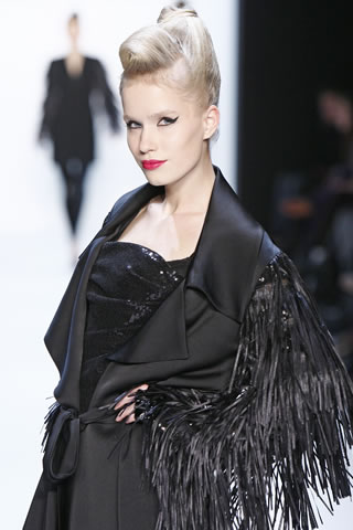 Susanne Wiebe exercises herself again and again in a venturesome walk at the borderline between classic and provocating: “Mixing materials with signaling effect, pleated fabric to lacquer leather, laxity to acerbity, strong-coloured appearances and the favourite colour black in all alternatives, fulminant artprints to black, Shanghai photoprints of the artist Hans M. Bachmayer in all fabrics to orchid, iris and bloodyred.