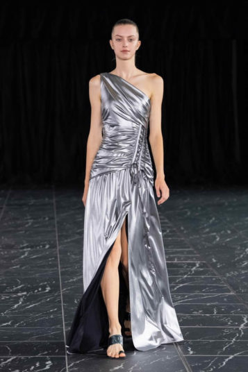 As the collection’s focus shifted toward after-hours, Ashida hit her stride. There are fewer events to attend, given the current state of the world, but that party deficit means every occasion takes on special significance. As such, the eveningwear was relaxed and versatile enough to be worn to low-key functions.