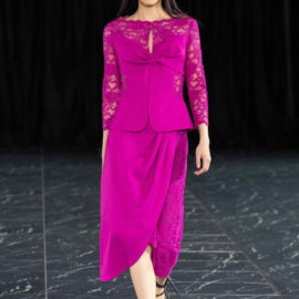 Multiple incarnations of the piece made their way onto Ashida’s runway, but the lineup avoided business-casual blandness thanks to the details. There were tuxedo-esque cropped jackets adorned with oversized bows and knee-length single-breasted designs with a satiny sheen for the girls.