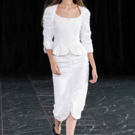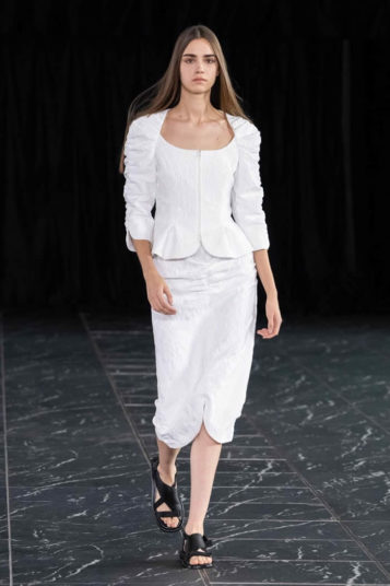 Edging close to the 30th anniversary of her brand, Ashida’s recent work has focused on asserting her codes by centering on her essential pieces. This season that meant an exploration of the blazer, an item she selected for its connection to the office rather than telecommuting’s nebulous virtual space.