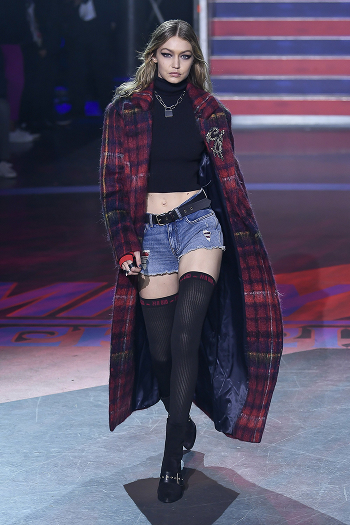 Like P.T. Barnum himself, Hilfiger had a host of sideshows up his sleeve, too. On the periphery of the circular show space, guests grazed on mini cheeseburgers, hot dogs, chips and wine; they perused merch from pop-up shops selling Tommy Hilfiger vintage, Tommy x Gigi, and Gigi collections; and got T-shirts, bags and buttons customized. A poster-making booth offered guests the chance to pose alongside pictures of Hadid.